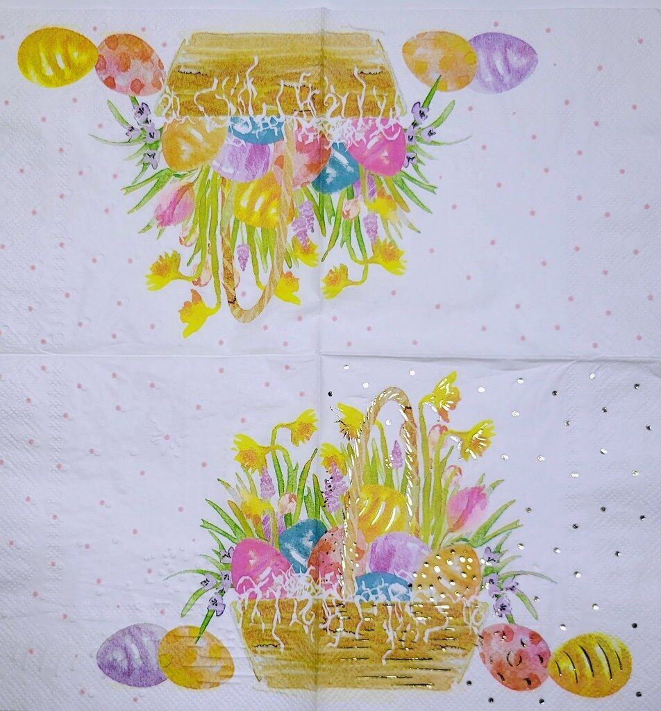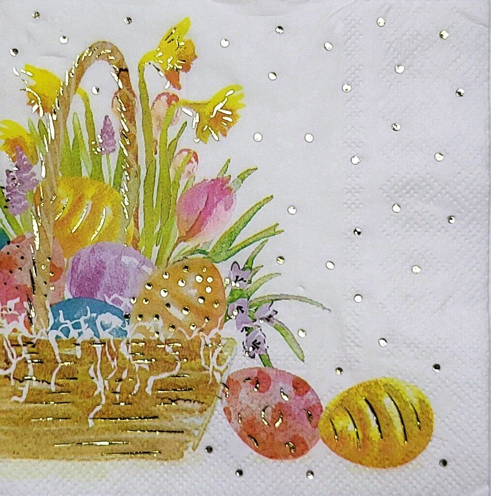 TWO Individual Paper Cocktail Decoupage Napkins - 2348 Foiled Easter Basket