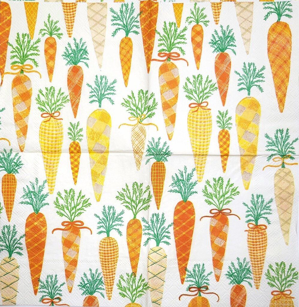 TWO Individual Paper Cocktail Decoupage Napkins - 2350 Farmhouse Carrots