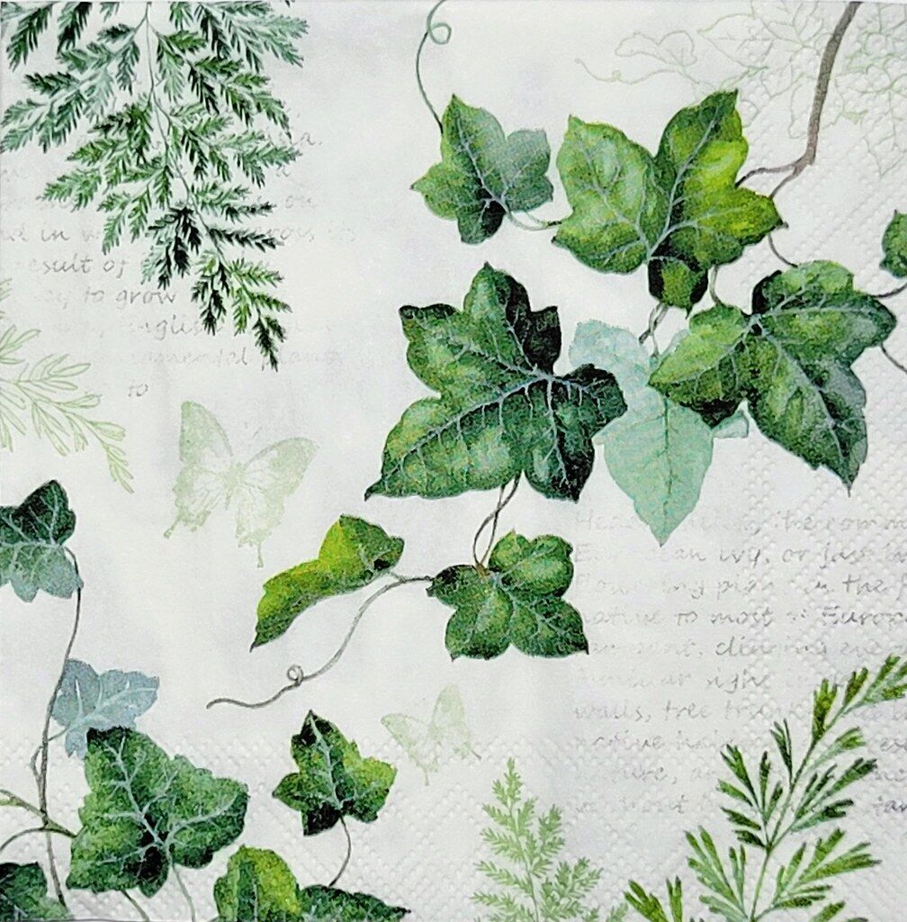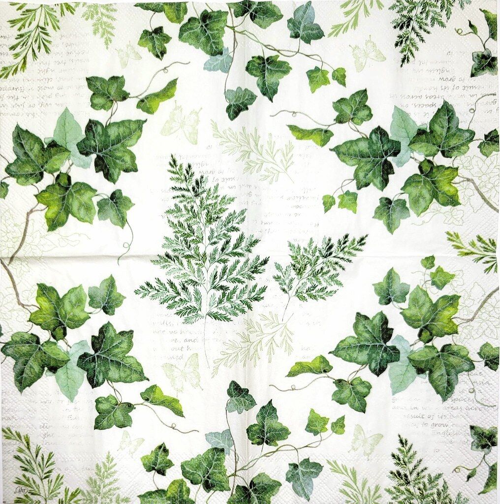 TWO Individual Paper Cocktail Decoupage Napkins - 2353 Elwin Scripted Greens
