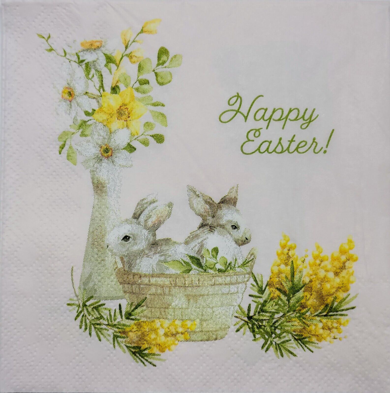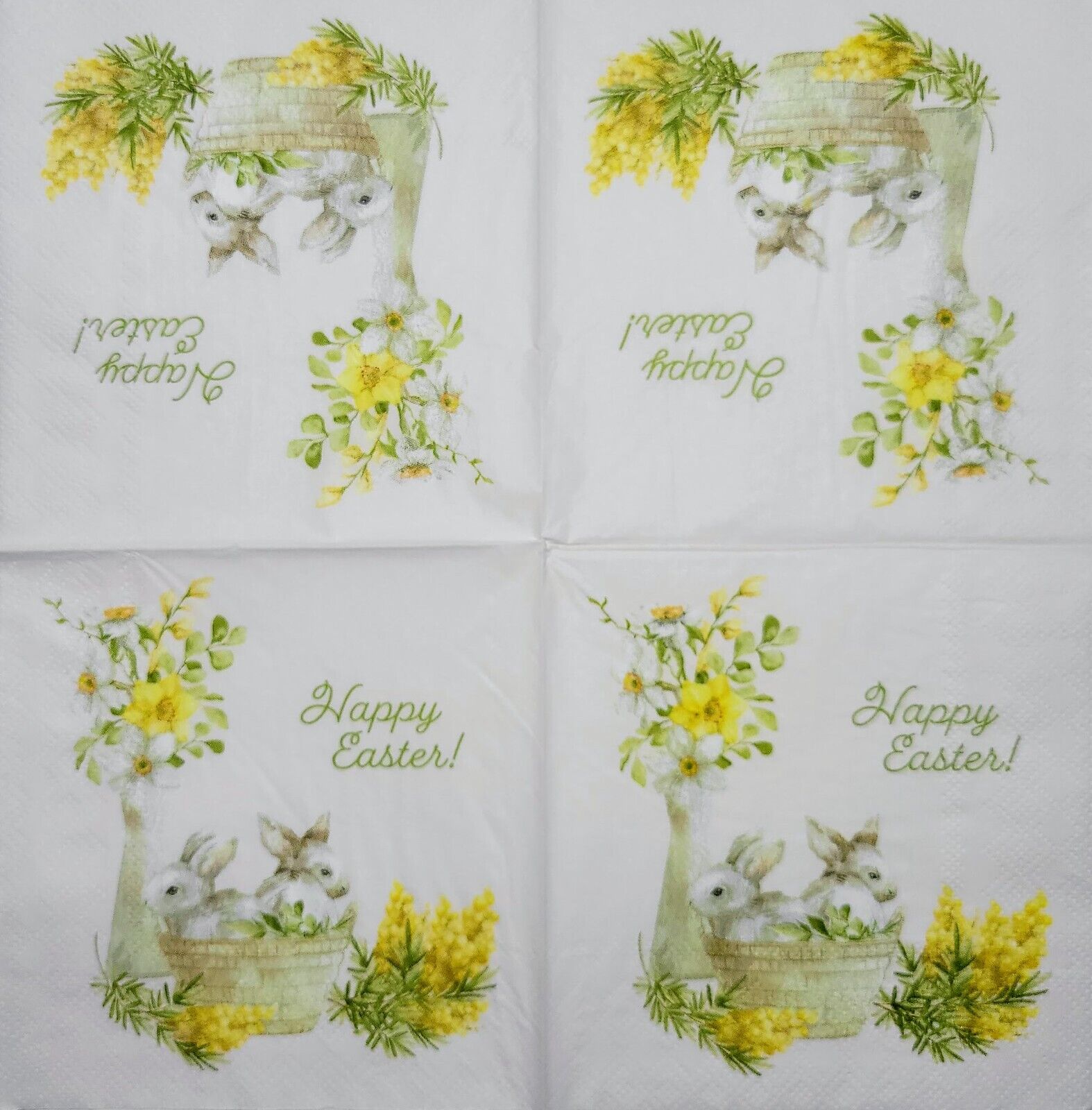 TWO Individual Paper Cocktail Decoupage Napkins - 2363 Happy Easter Bunny Basket