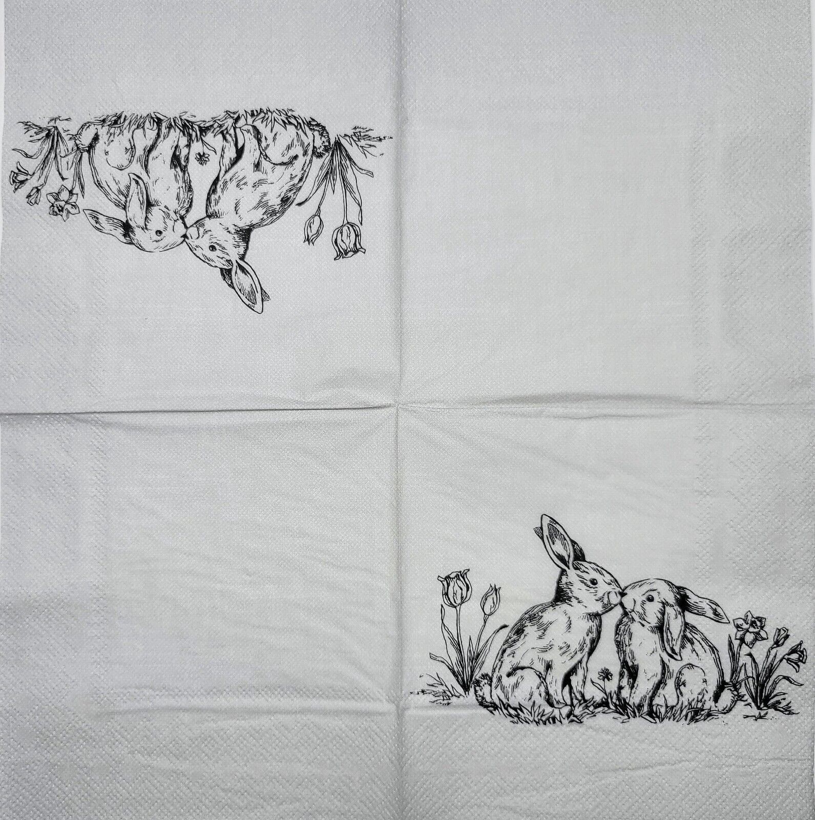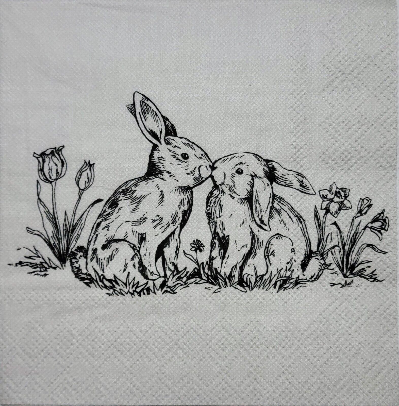 TWO Individual Paper Cocktail Decoupage Napkins - 2366 Bunny Kisses on Gray