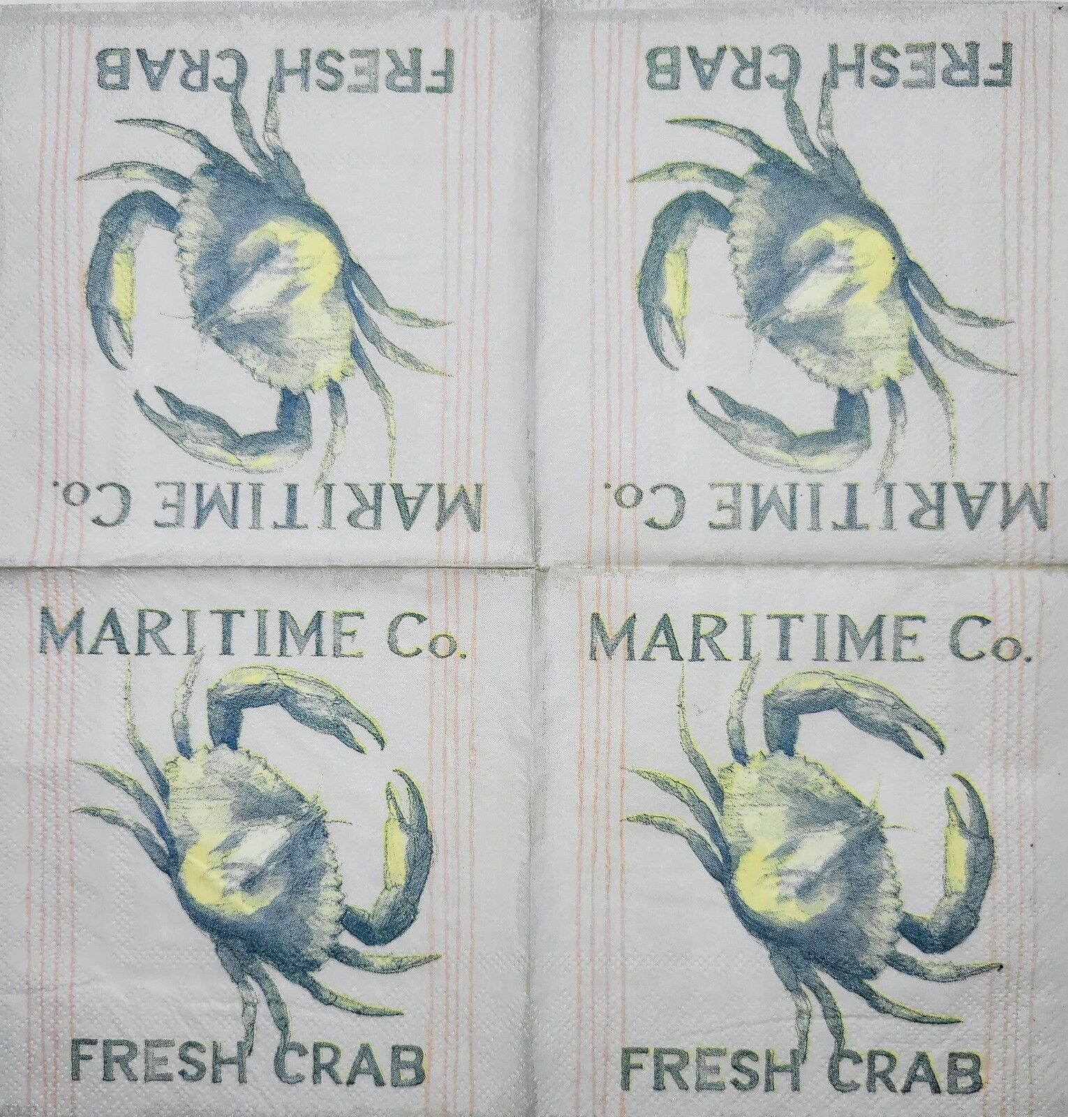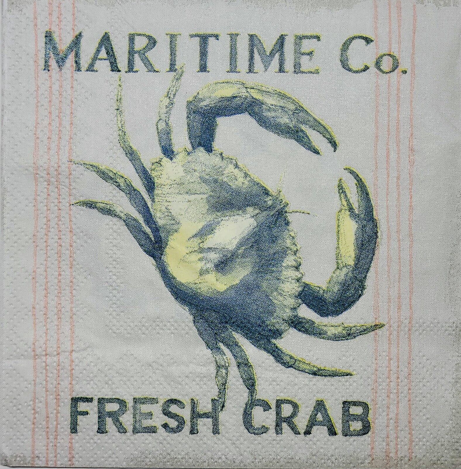 TWO Individual Paper Cocktail Decoupage Napkins - 2368 Maritime Co. Fresh Crab