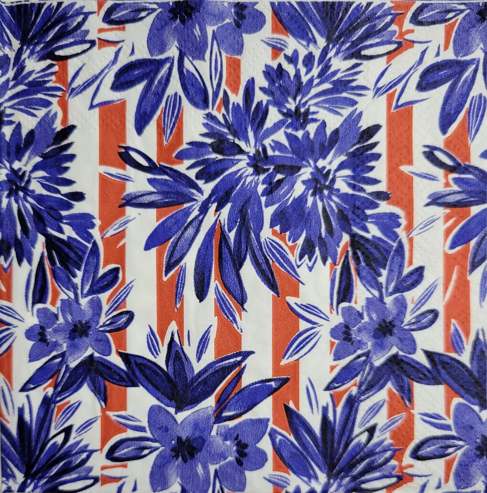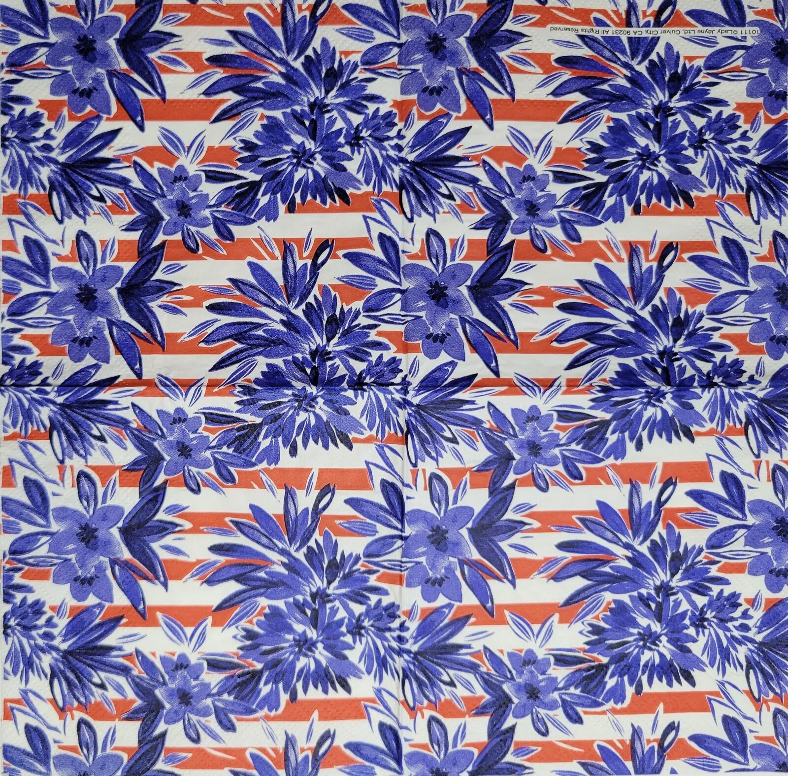TWO Individual Paper Cocktail Decoupage Napkins - 2387 Blue Patriotic Flowers