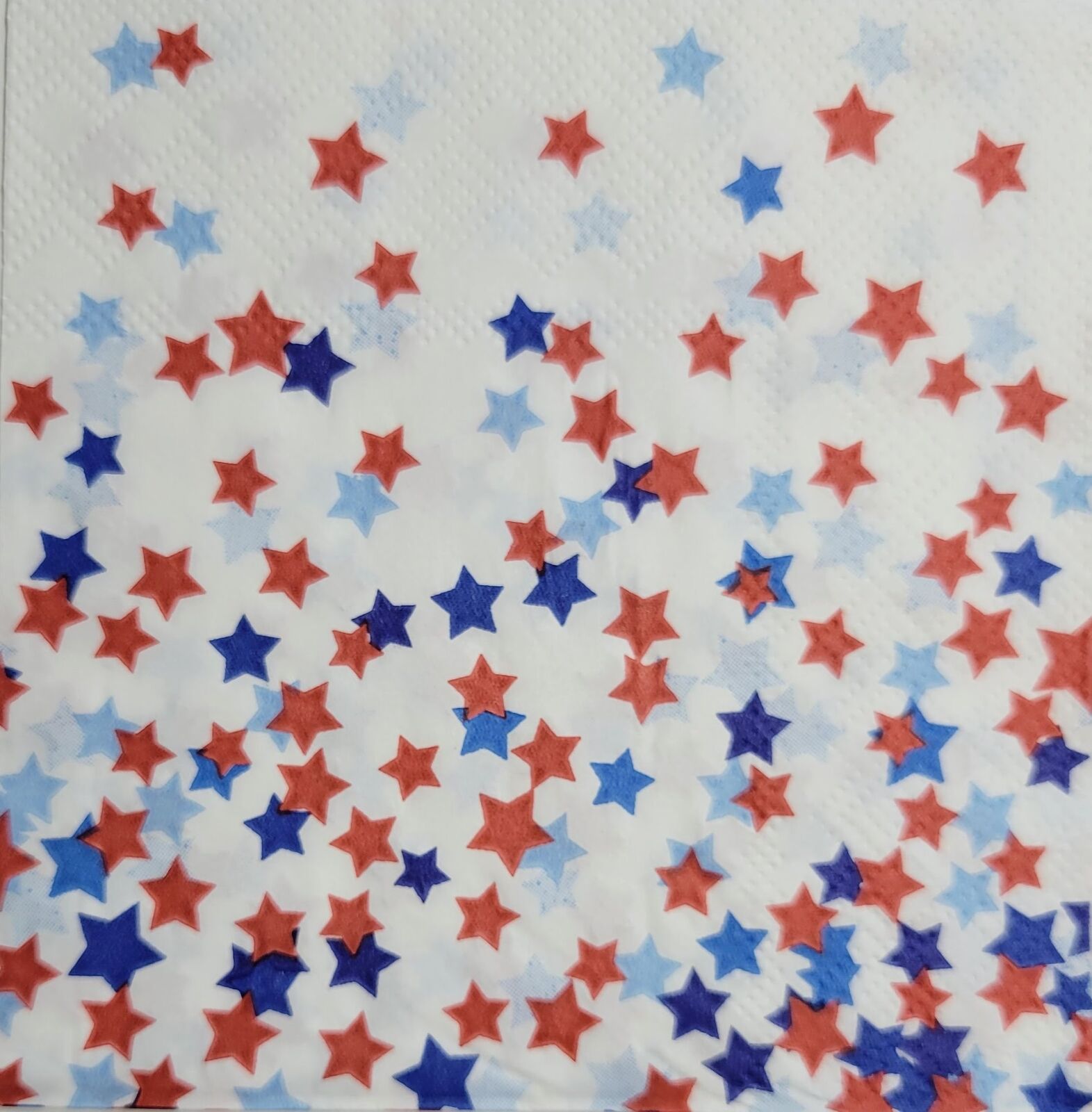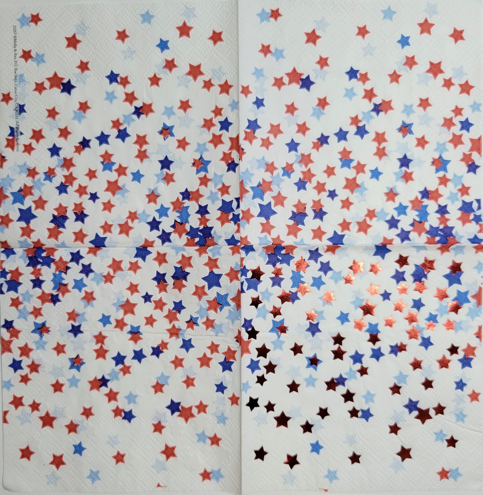 TWO Individual Paper Cocktail Decoupage Napkins - 2391 Foiled Red and Blue Stars