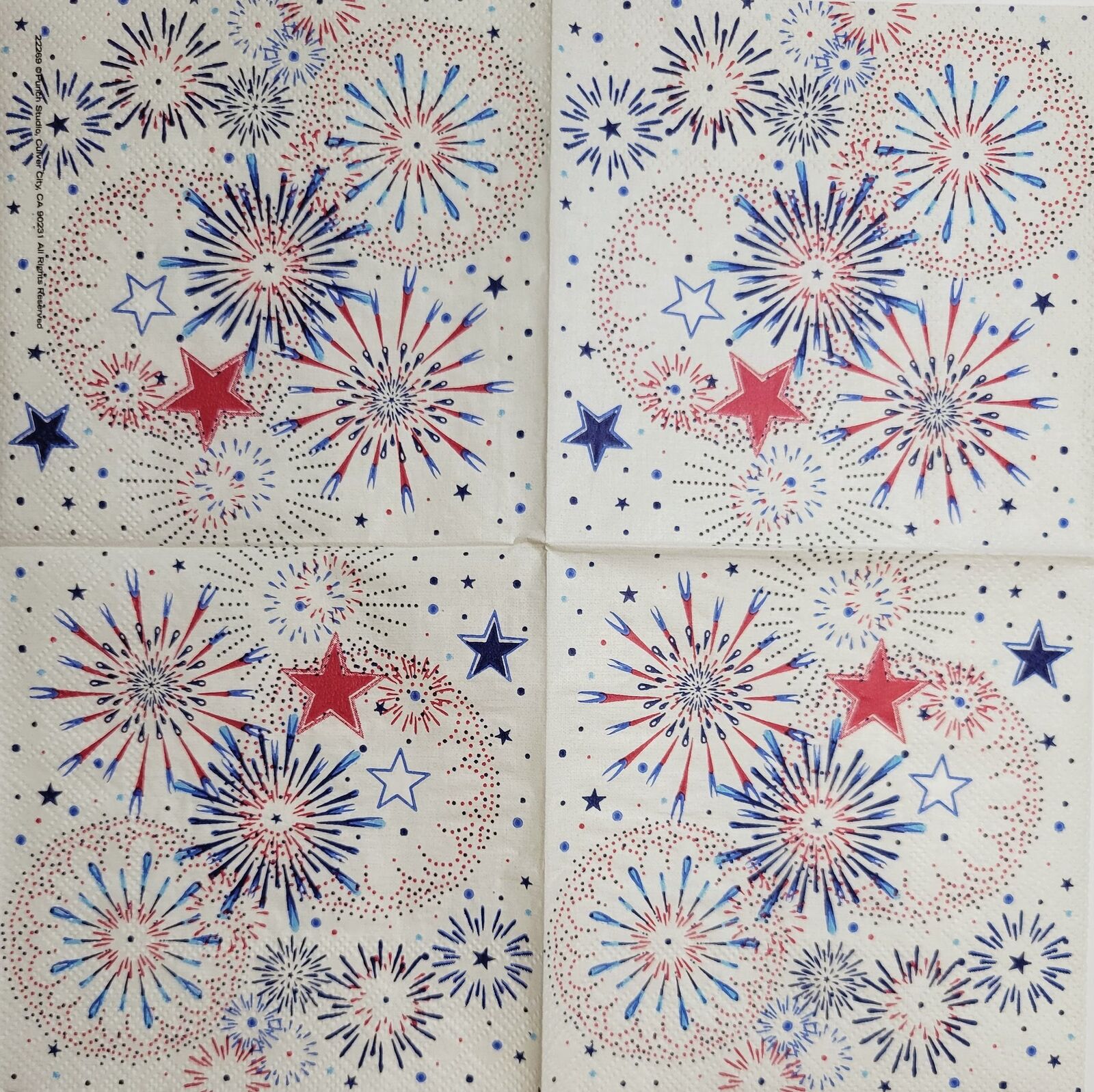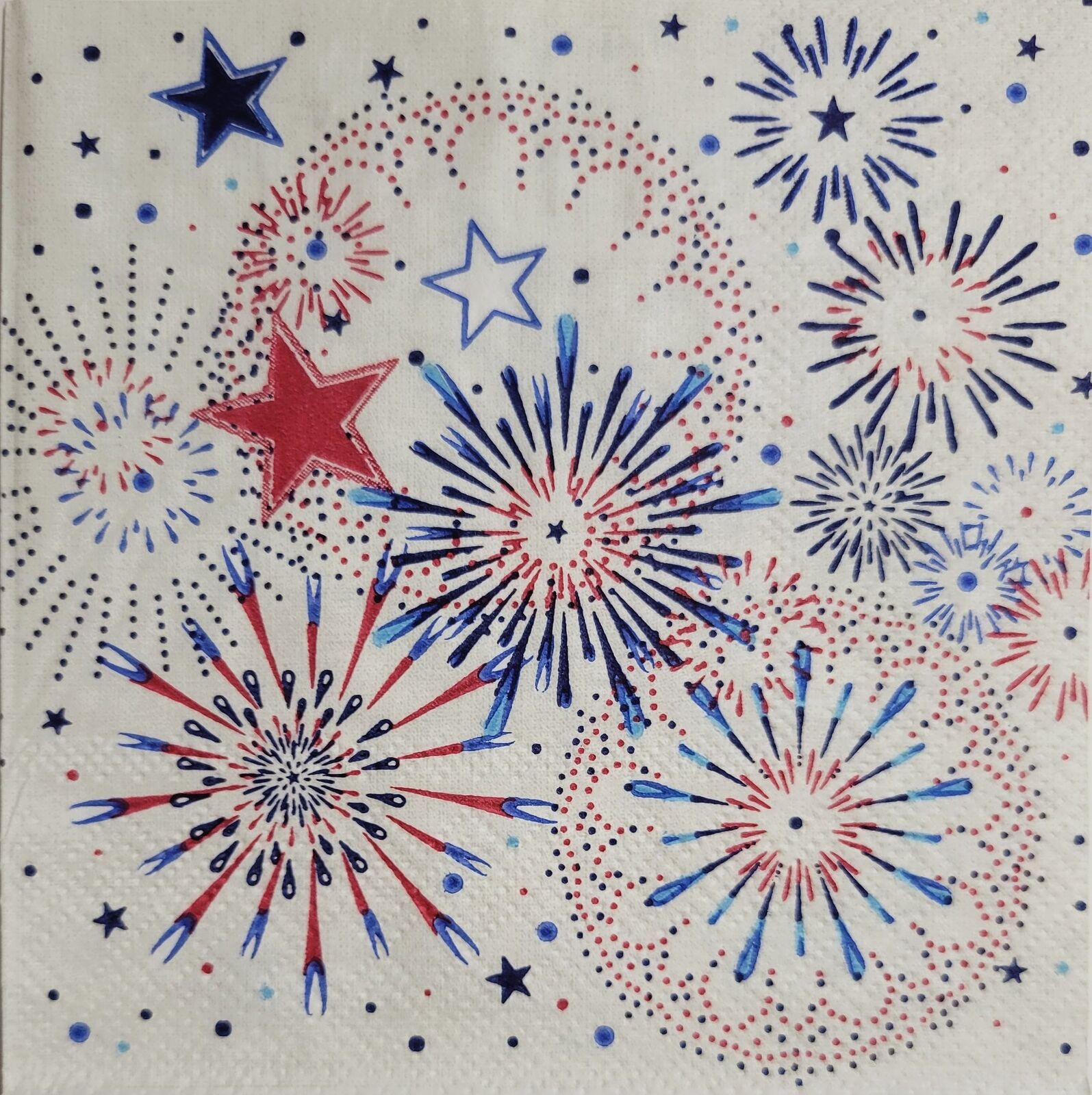 TWO Individual Paper Cocktail Decoupage Napkins - 2392 Red White Blue Fireworks