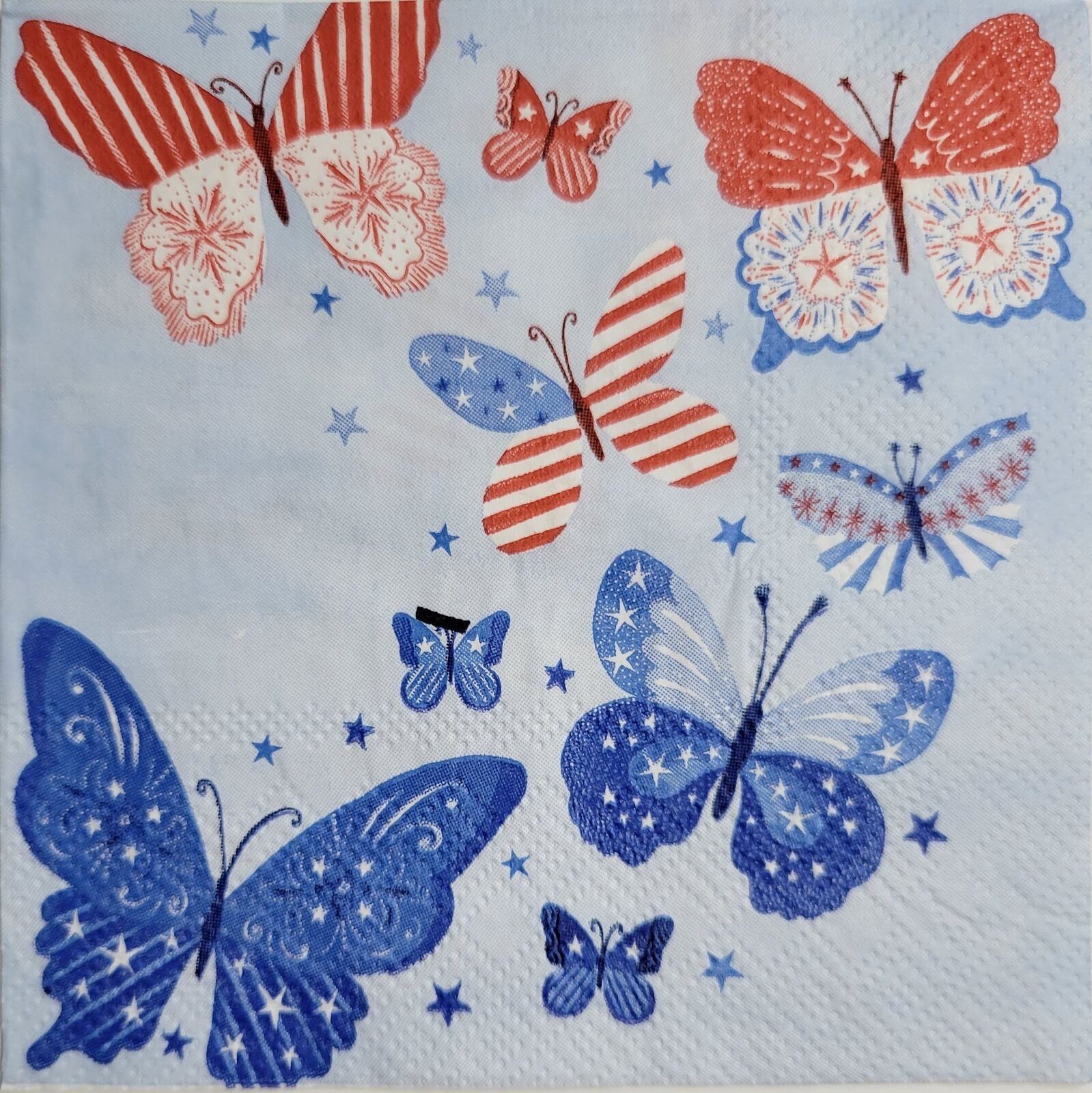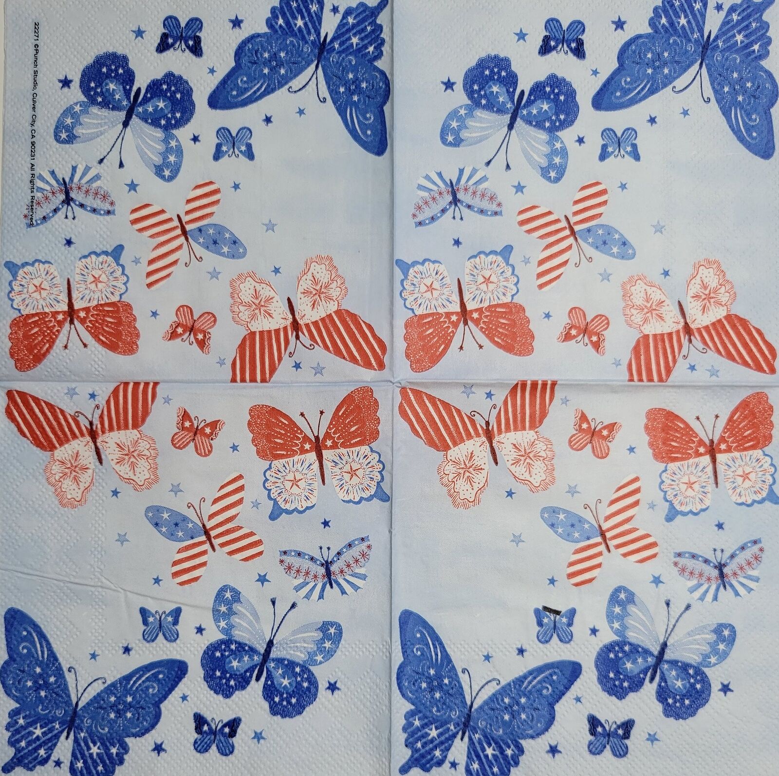 TWO Individual Paper Cocktail Decoupage Napkins - 2393 Patriotic Butterflies
