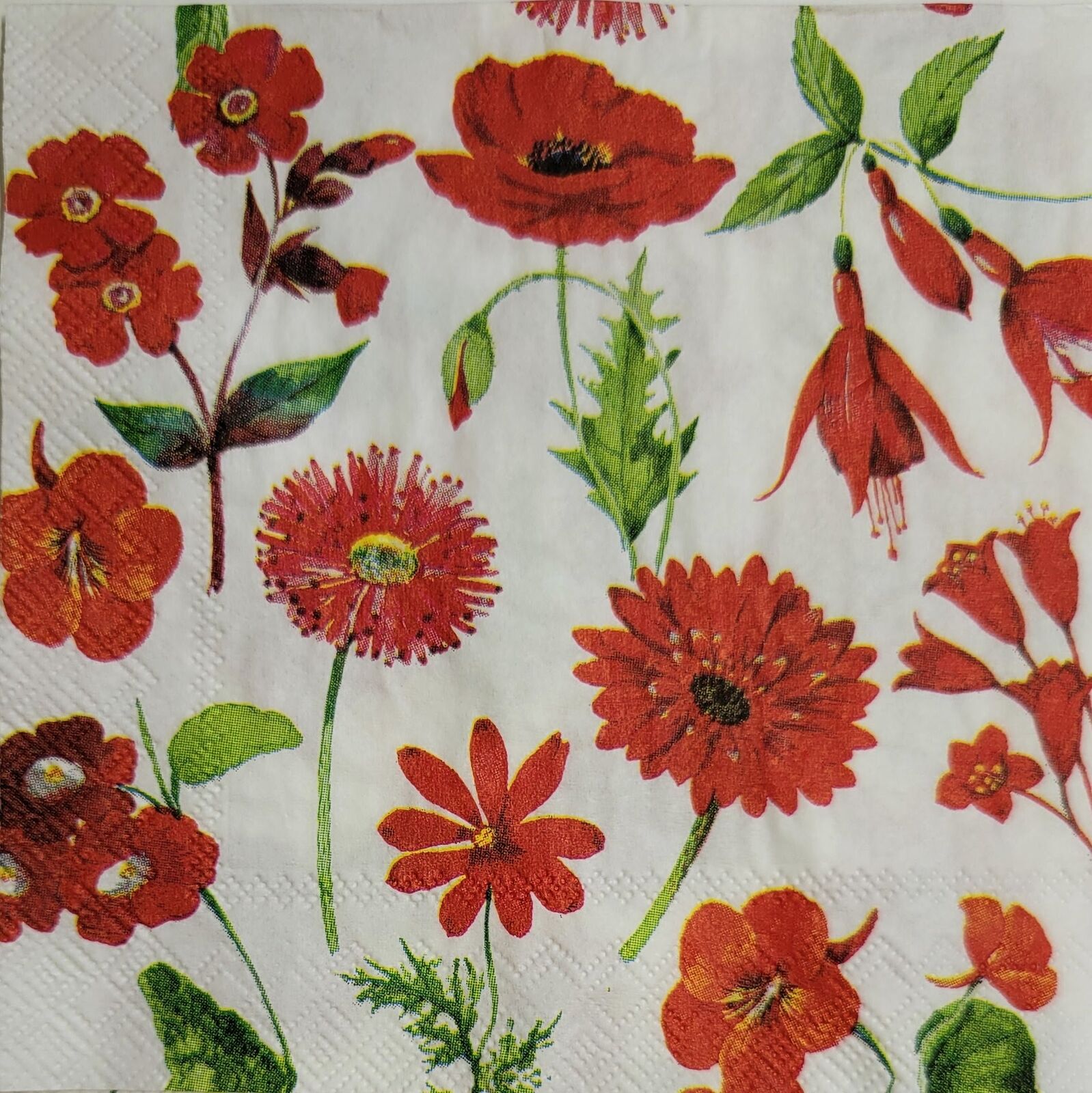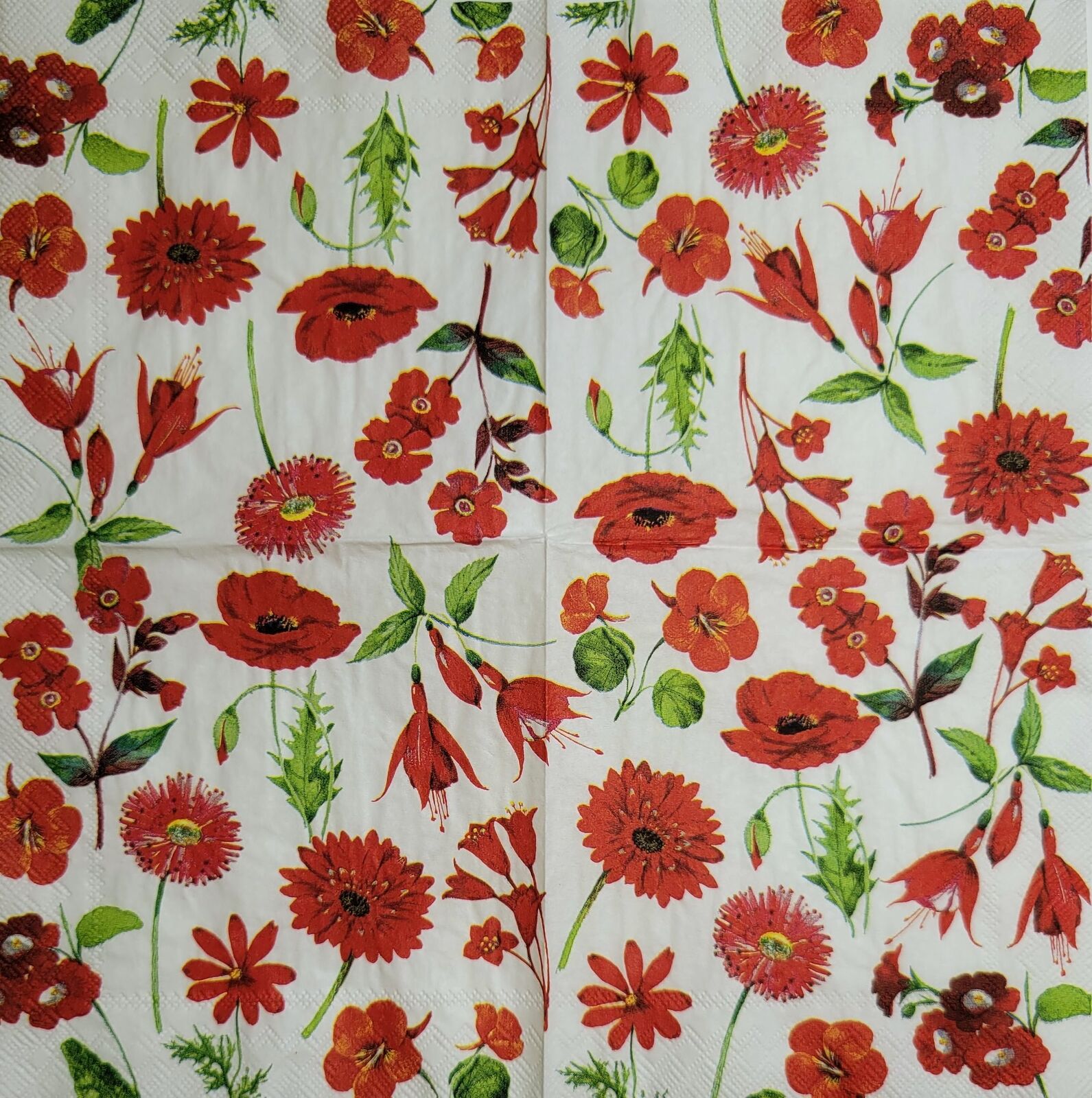 TWO Individual Paper Cocktail Decoupage Napkins - 2399 Mona's Red Floral