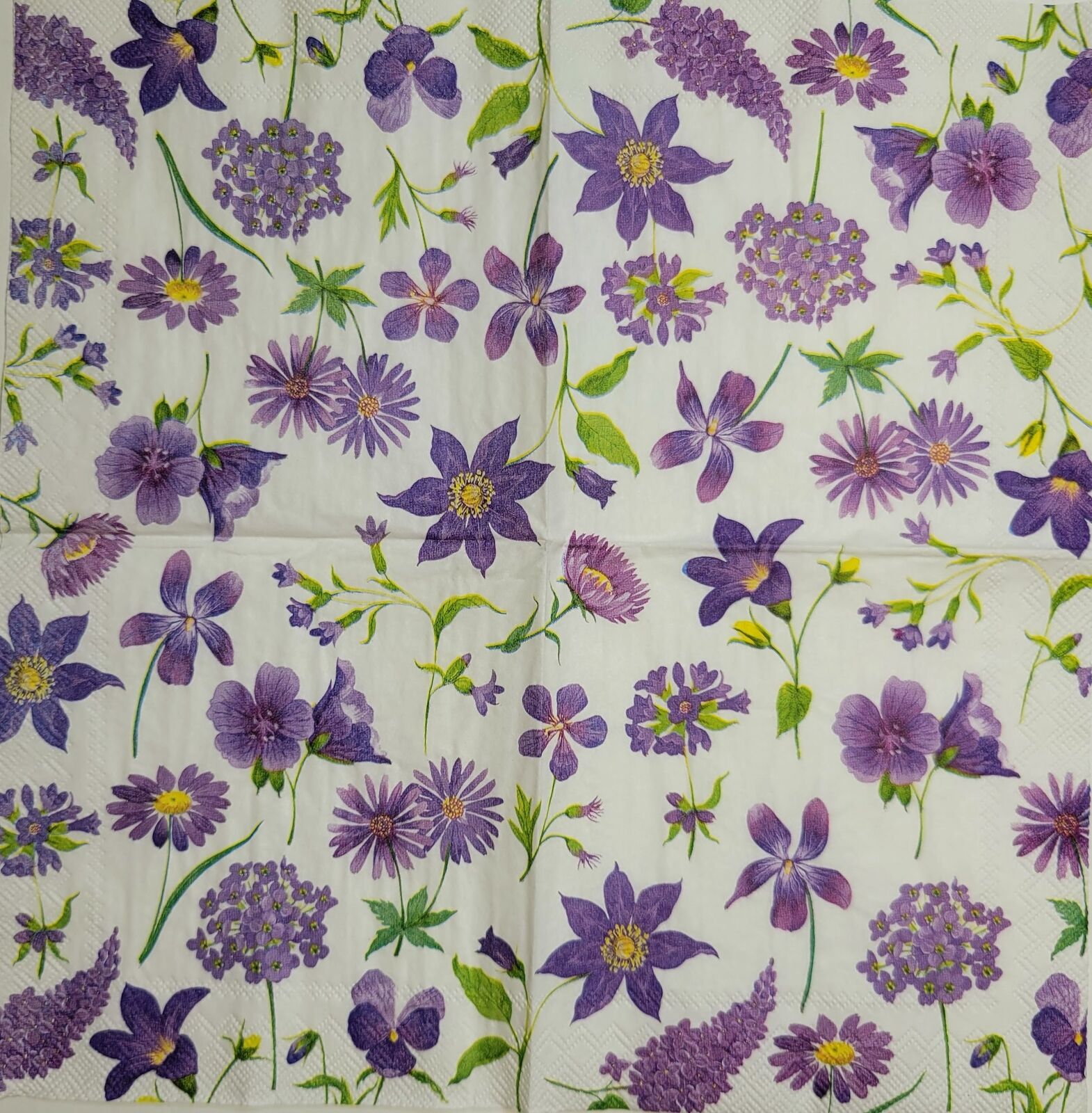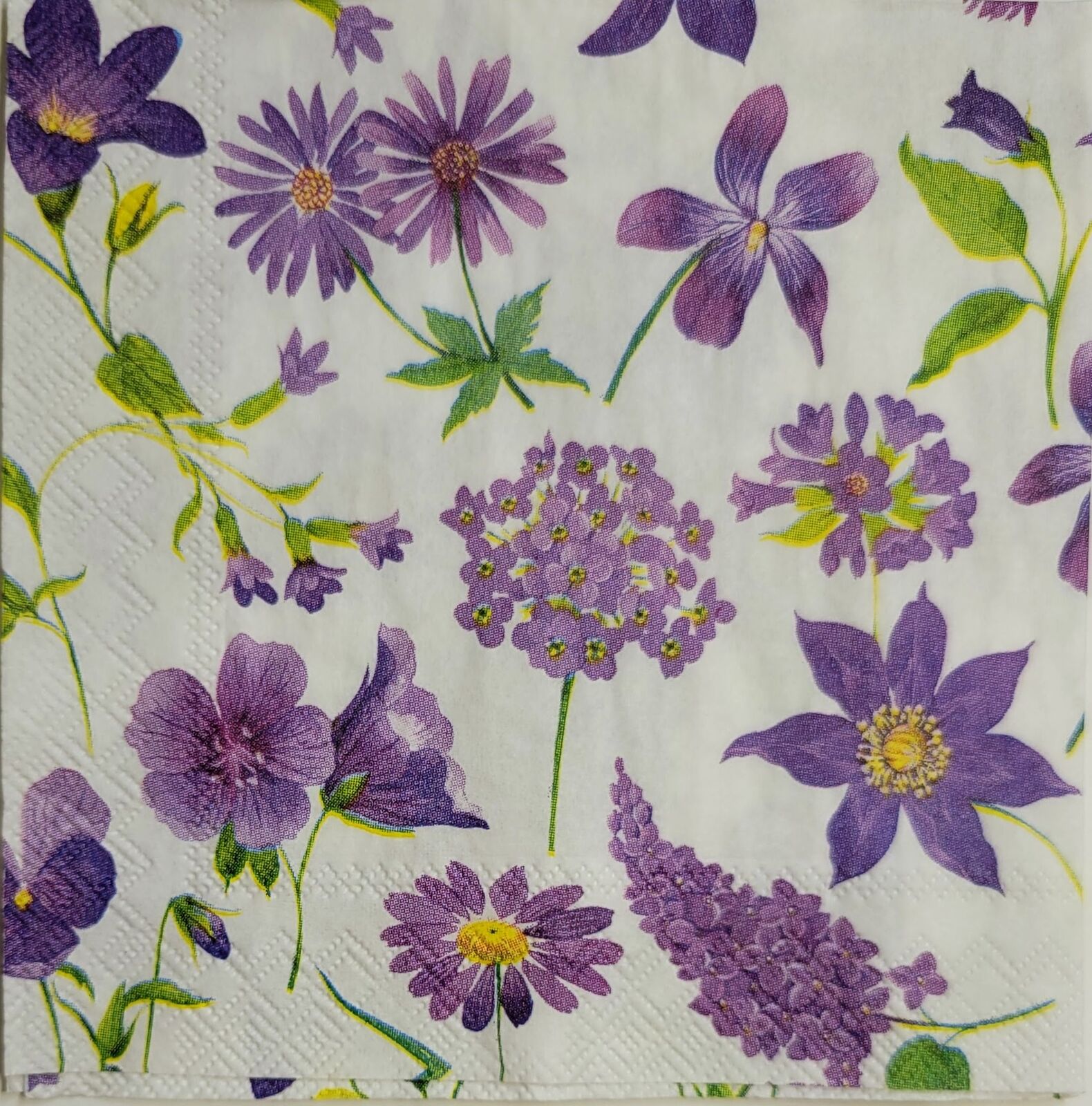 TWO Individual Paper Cocktail Decoupage Napkins- 2400 Clea's Purple Floral Burst