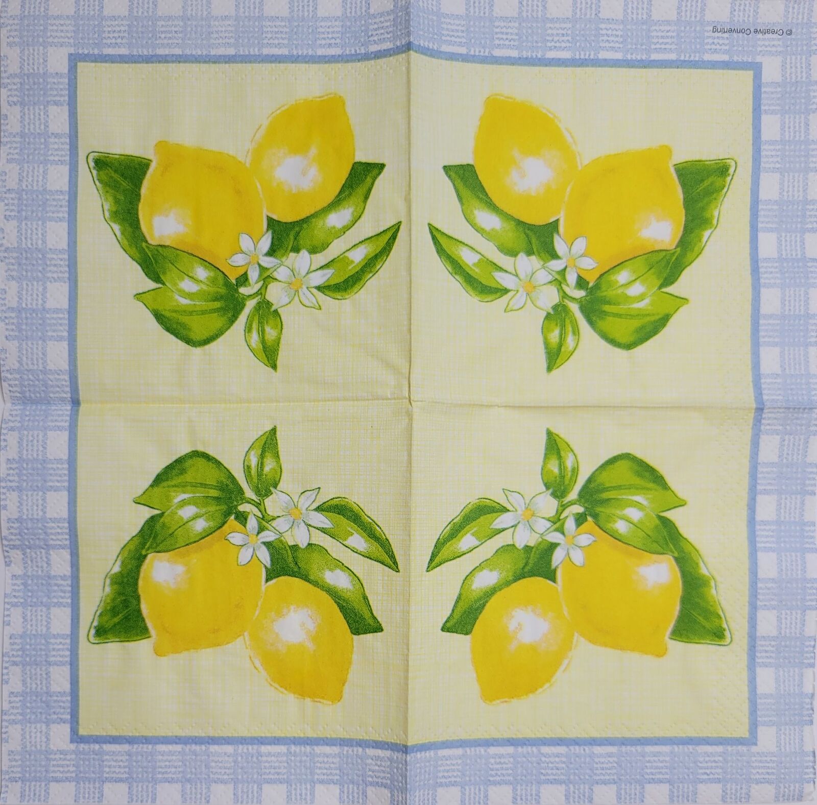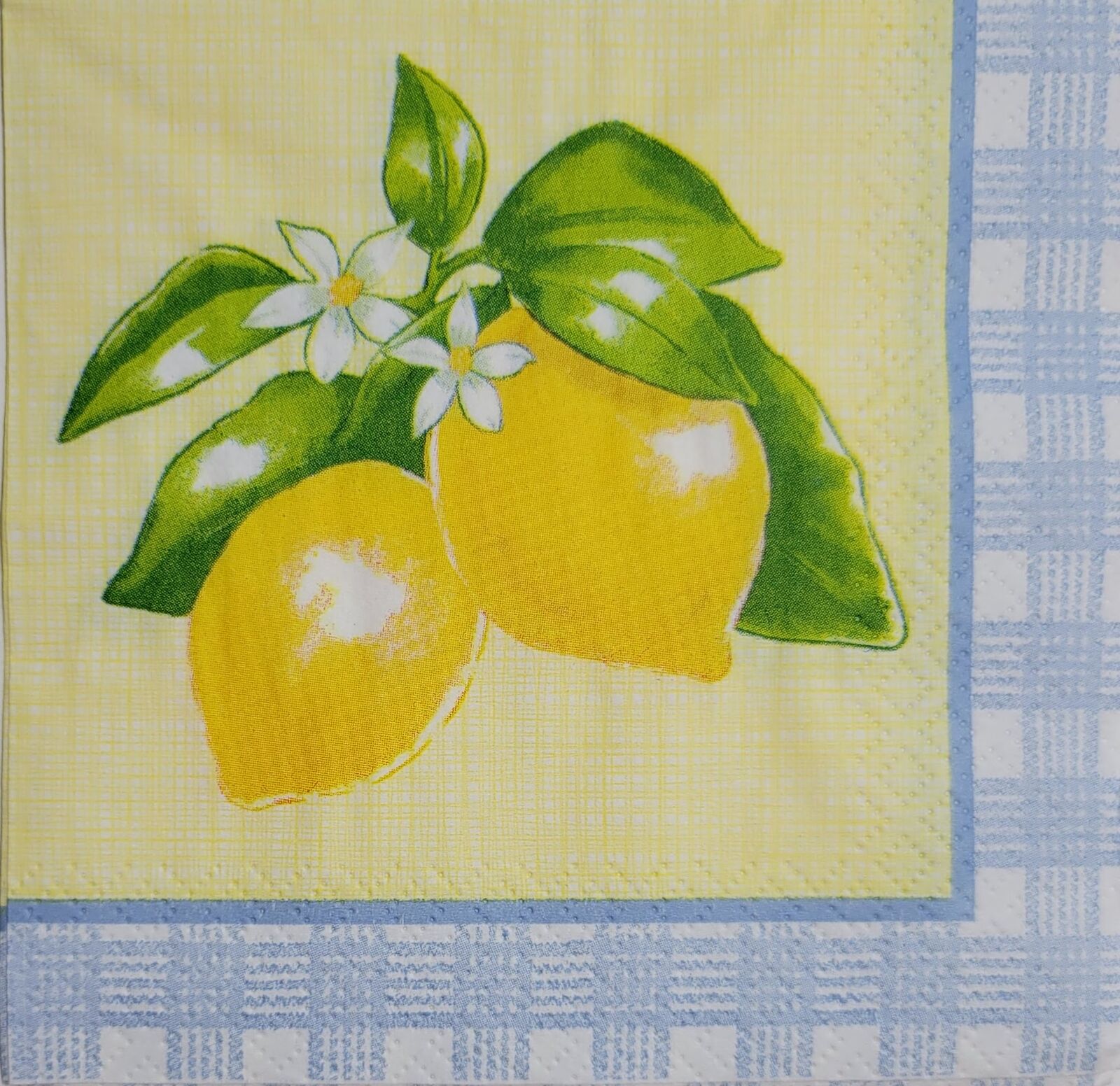 TWO Individual Paper Cocktail Decoupage Napkins - 2403 Checkered Lemons