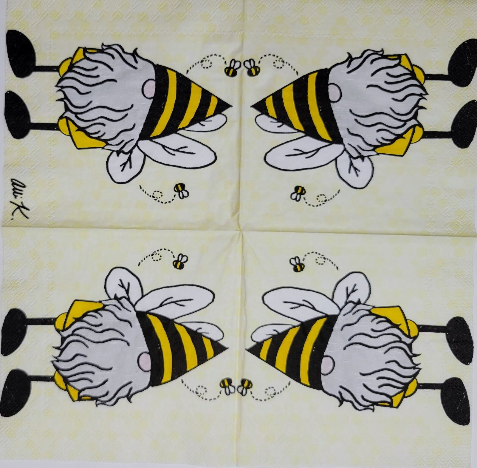 TWO Individual Paper Cocktail Decoupage Napkins - 2404 Bee Gnome