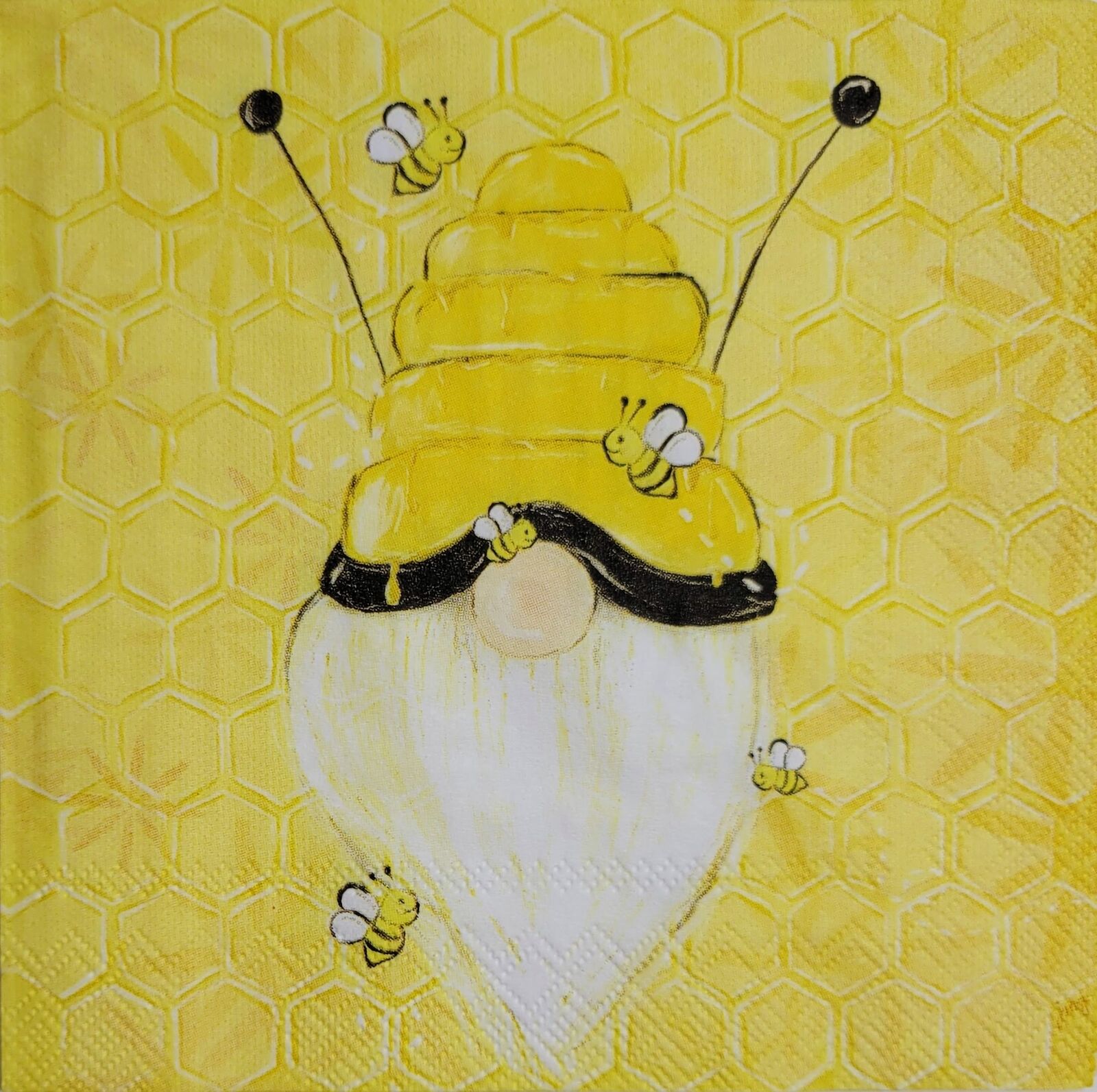 TWO Individual Paper Cocktail Decoupage Napkins - 2405 Beehive Gnome