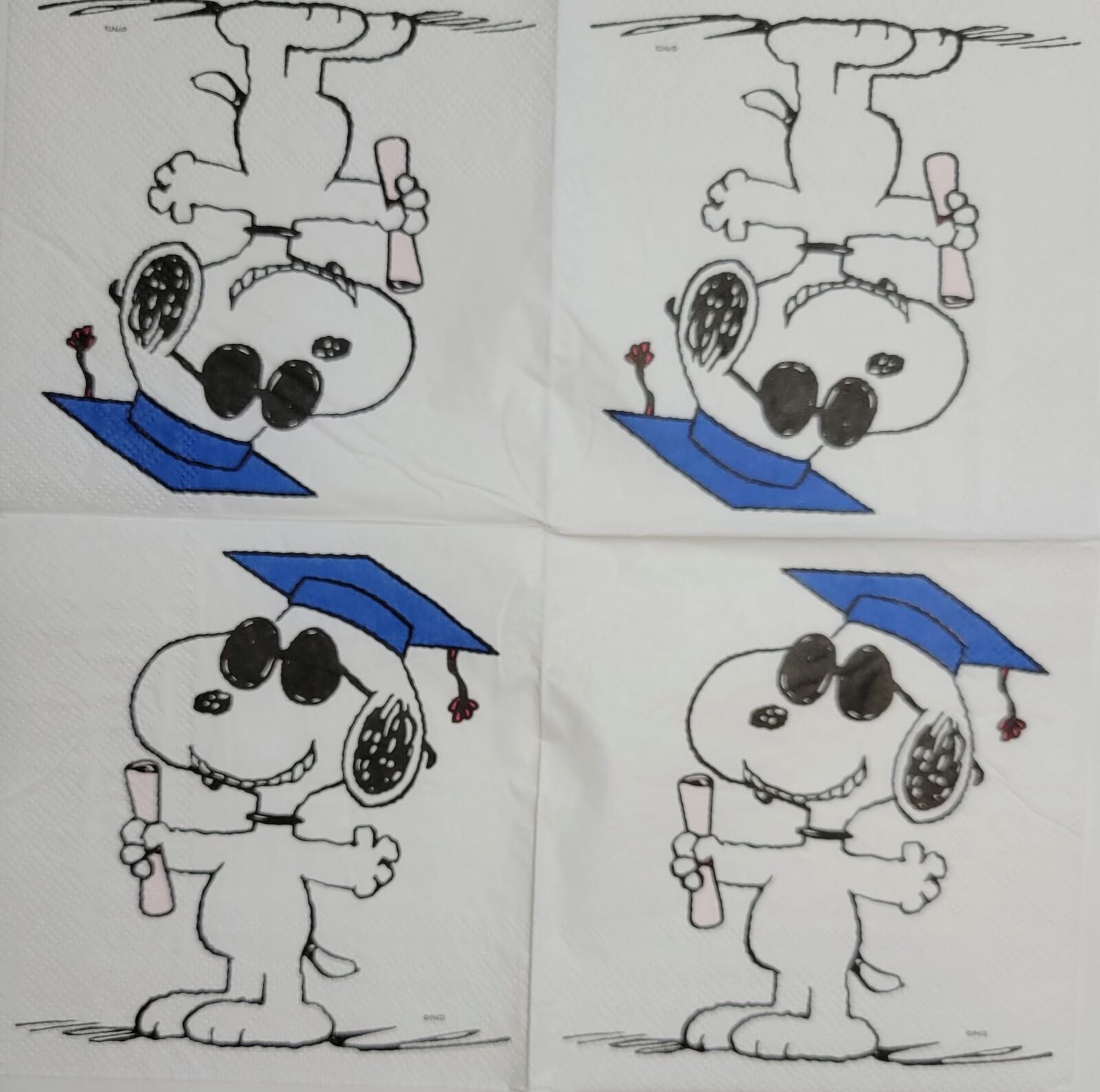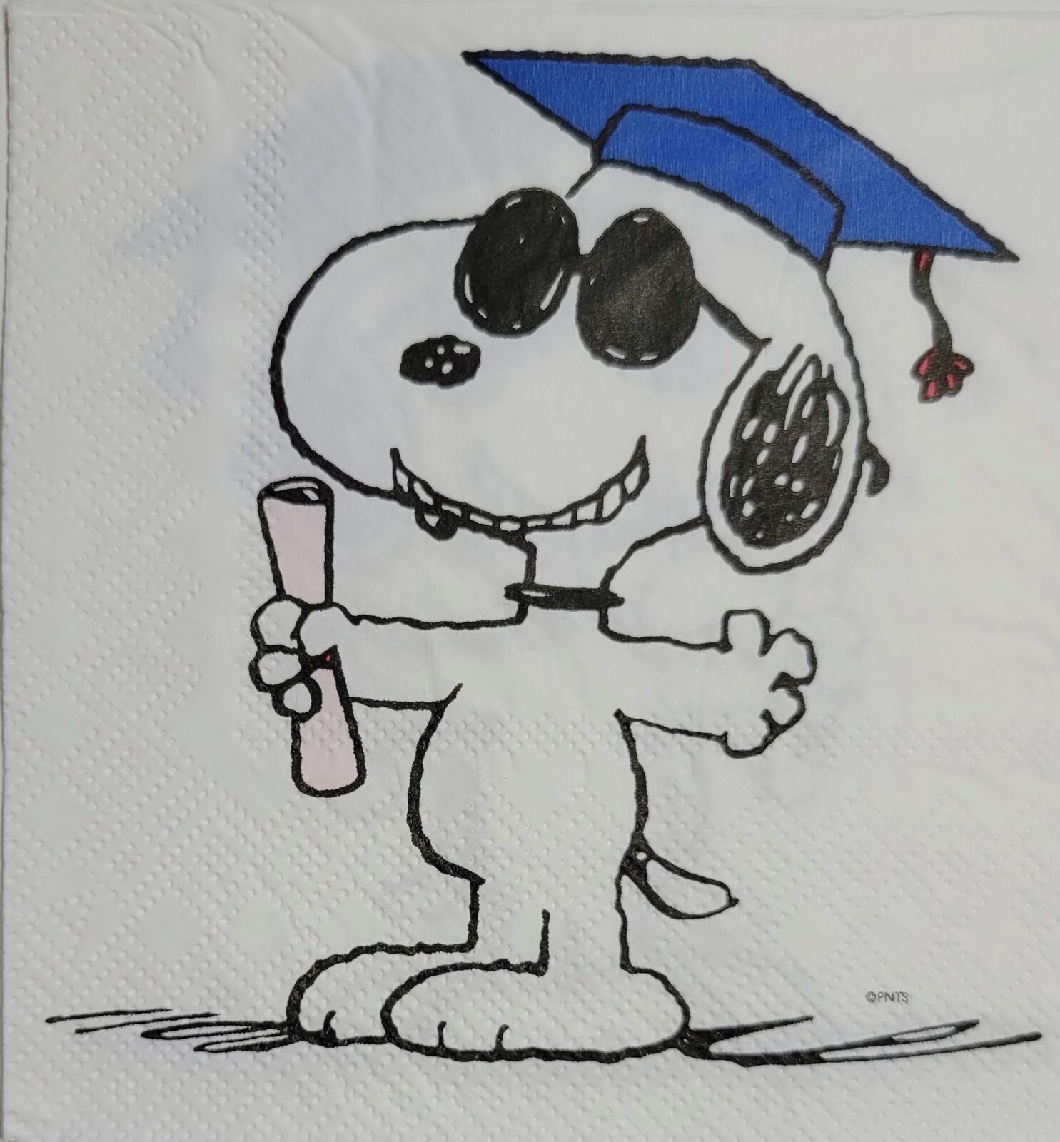 TWO Individual Paper Cocktail Decoupage Napkins - 2406 Graduation Snoopy