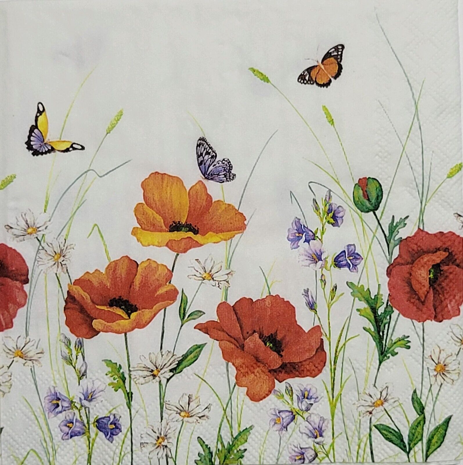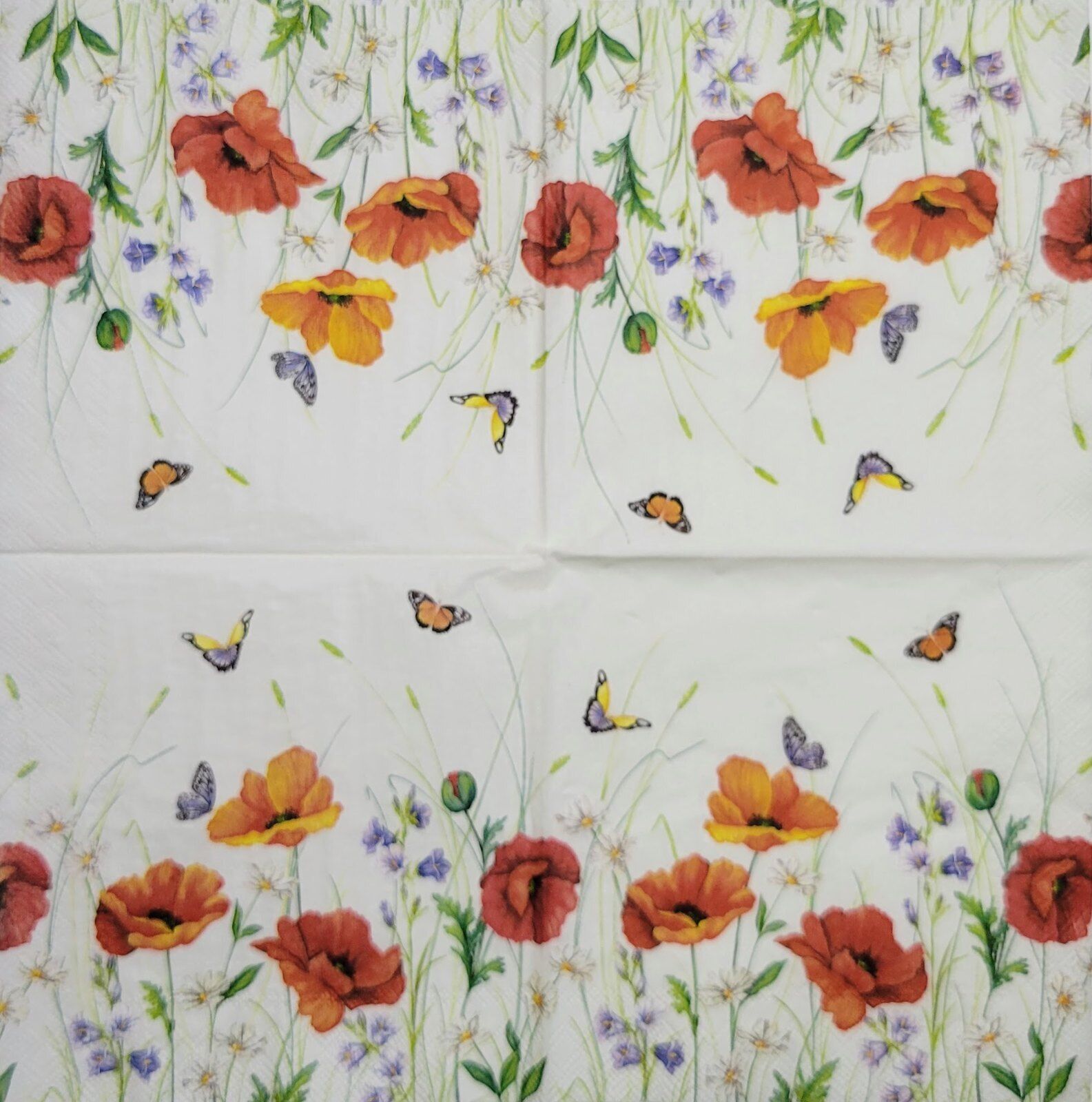 TWO Individual Paper Cocktail Decoupage Napkins - 2444 Summer Red Meadow