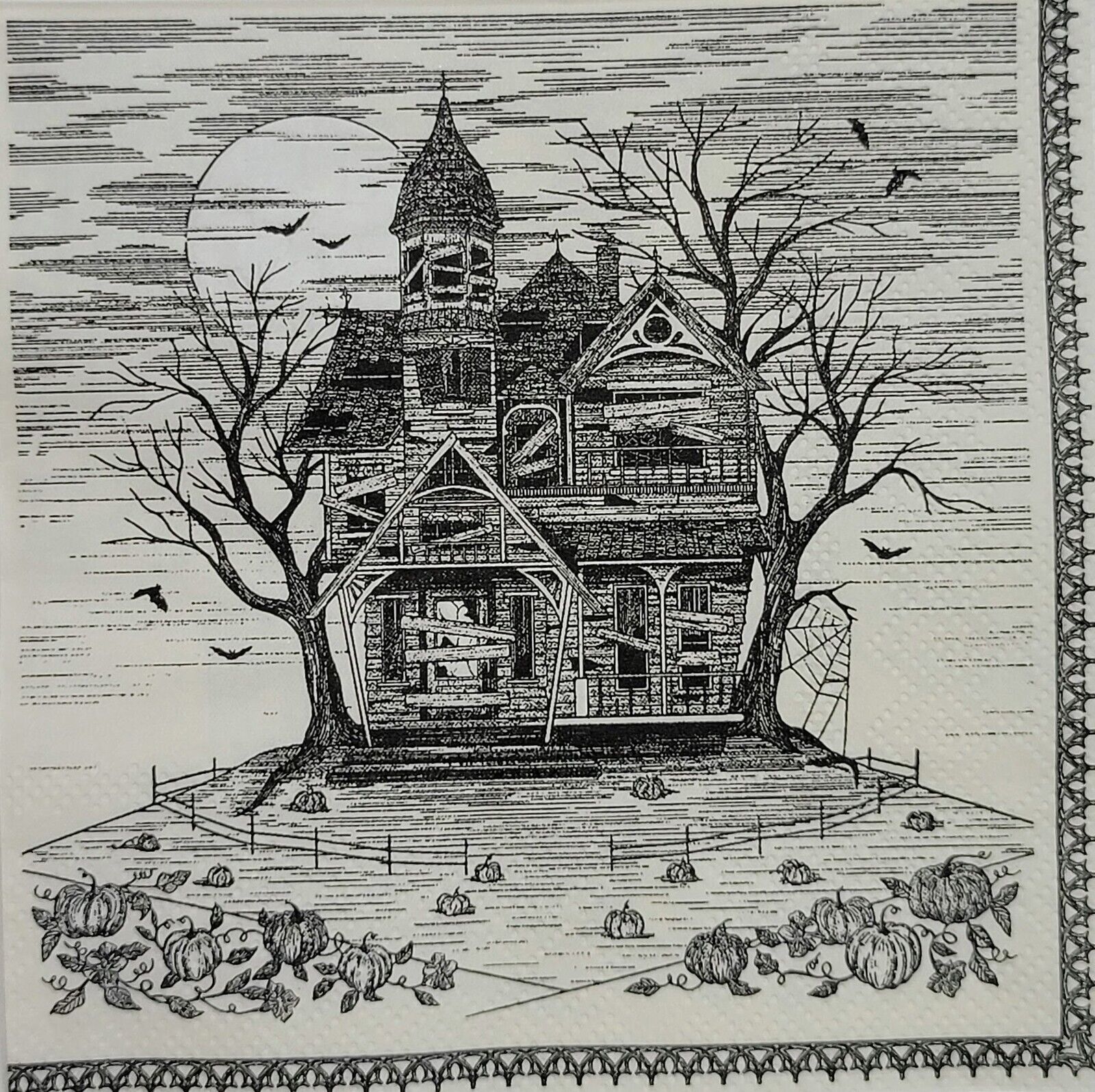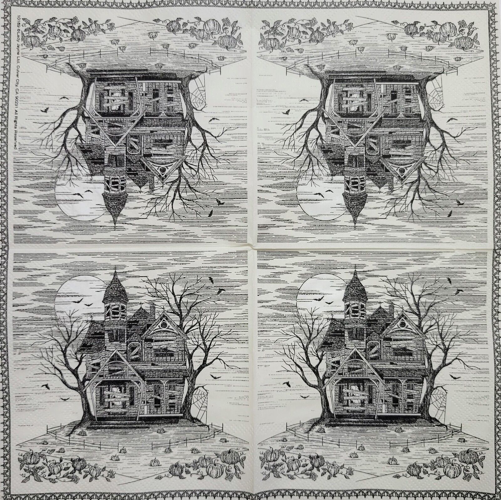 TWO Individual Paper Cocktail Decoupage Napkins - 2450 Spooky Haunted House