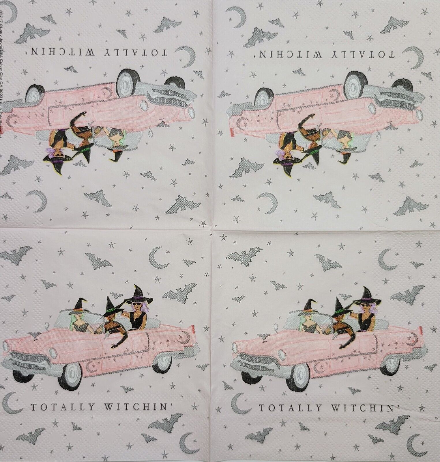 TWO Individual Paper Cocktail Decoupage Napkins - 2451 Totally Witchin Pink