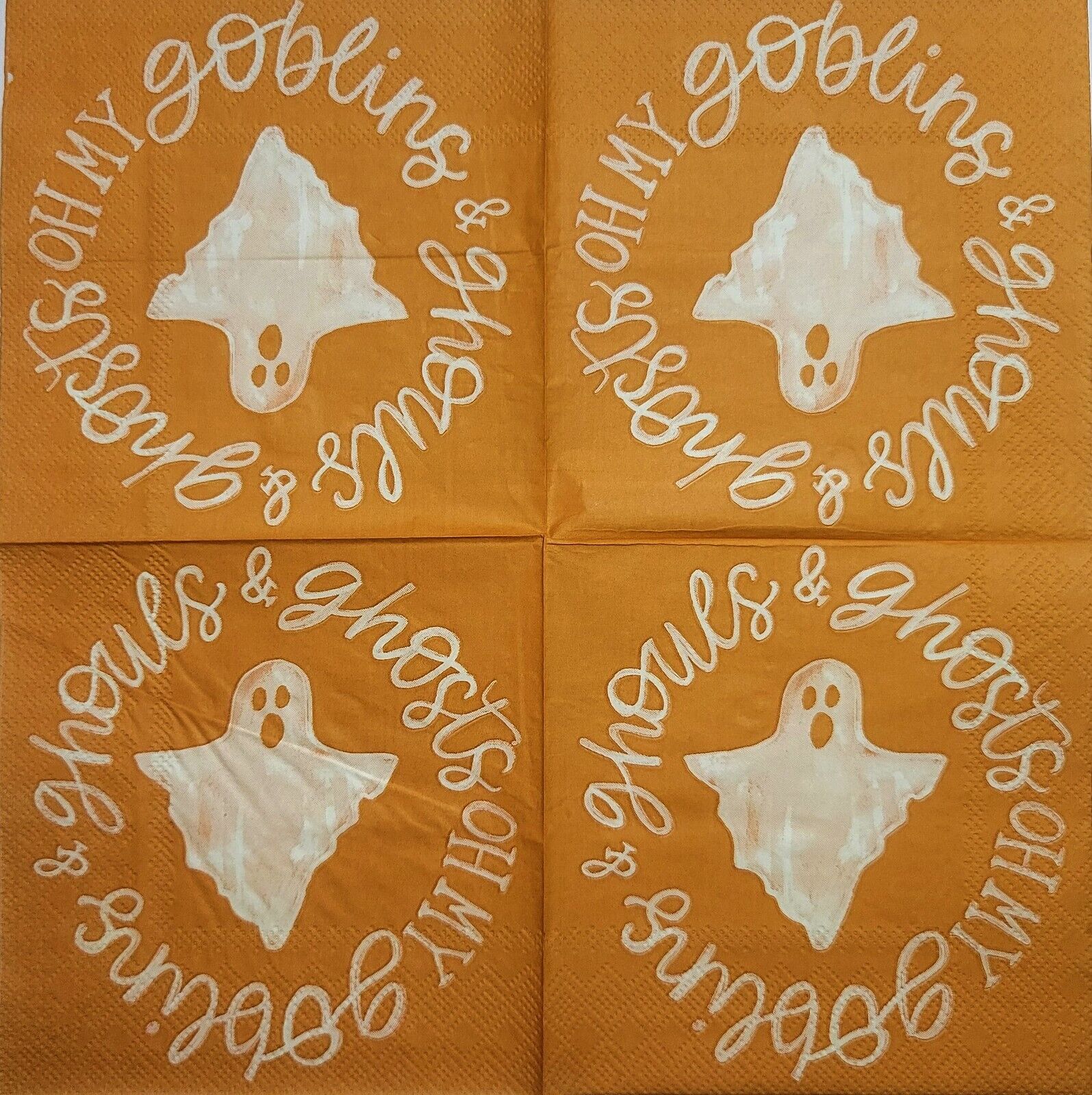 TWO Individual Paper Cocktail Decoupage Napkins - 2462 Goblins Ghouls Ghosts