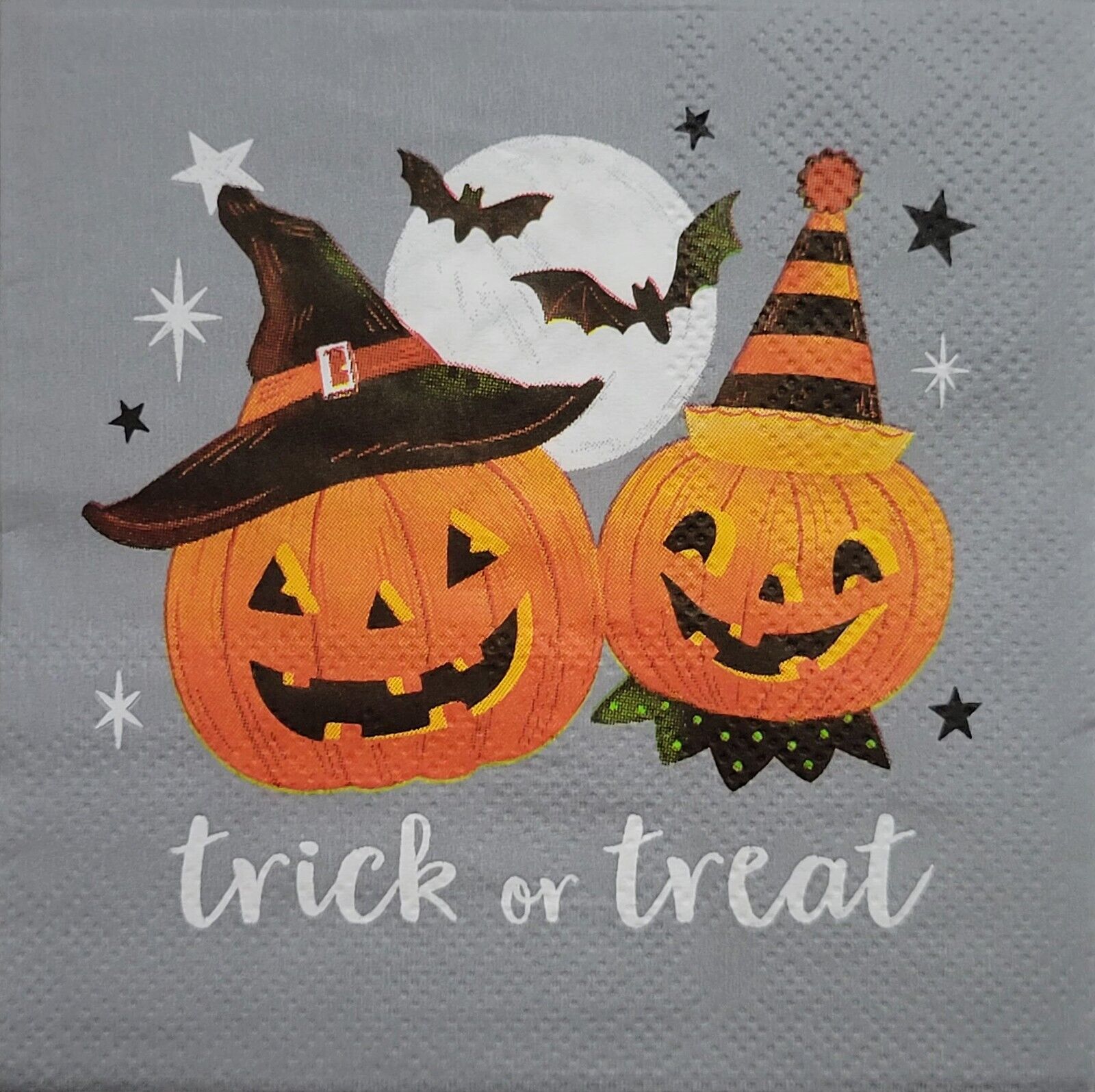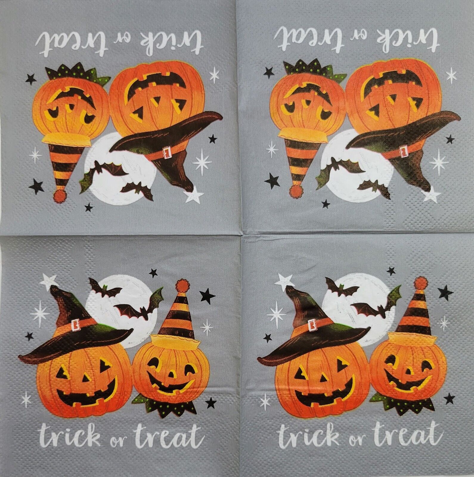 TWO Individual Paper Cocktail Decoupage Napkins - 2468 Trick or Treat Pumpkins