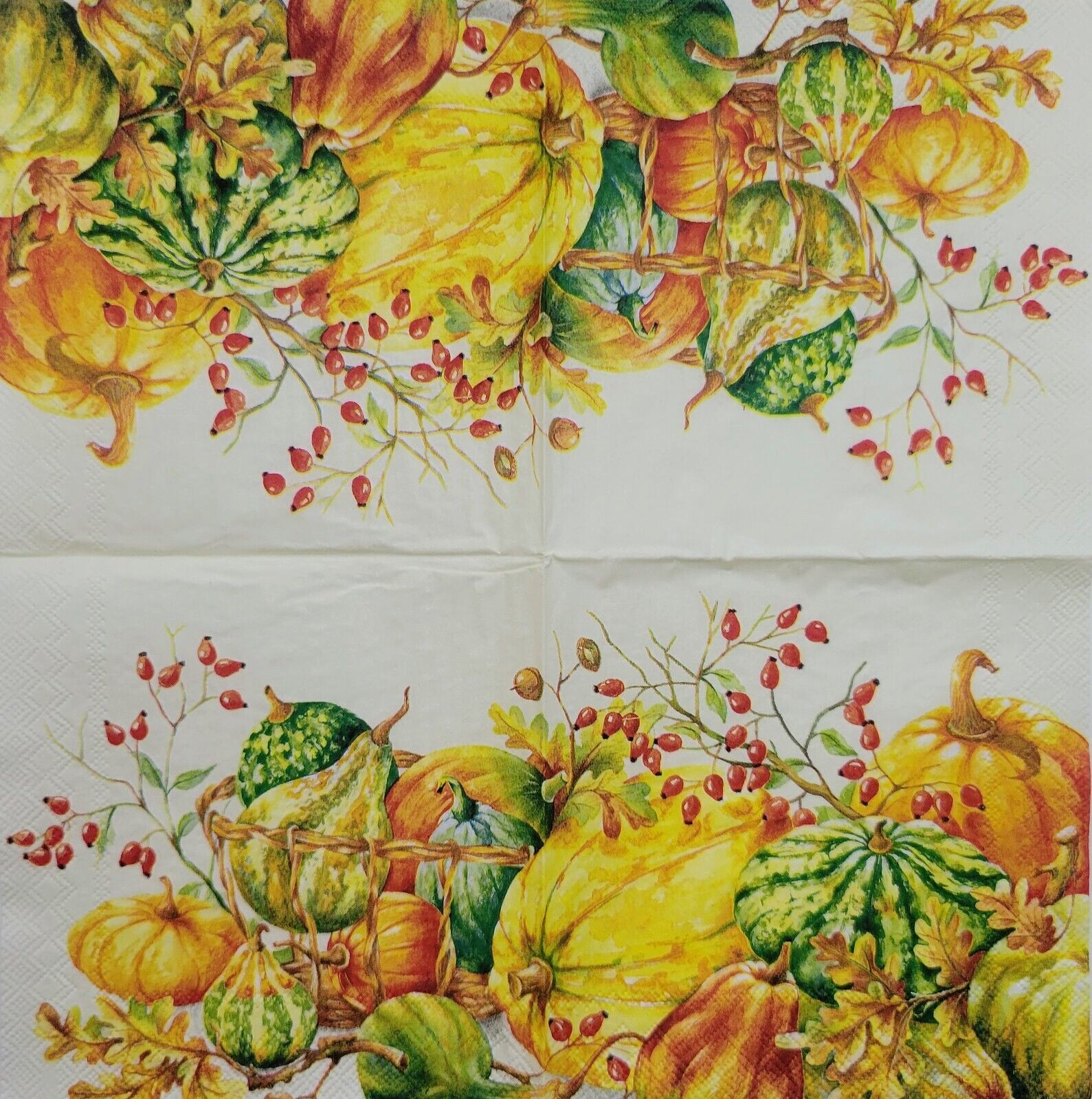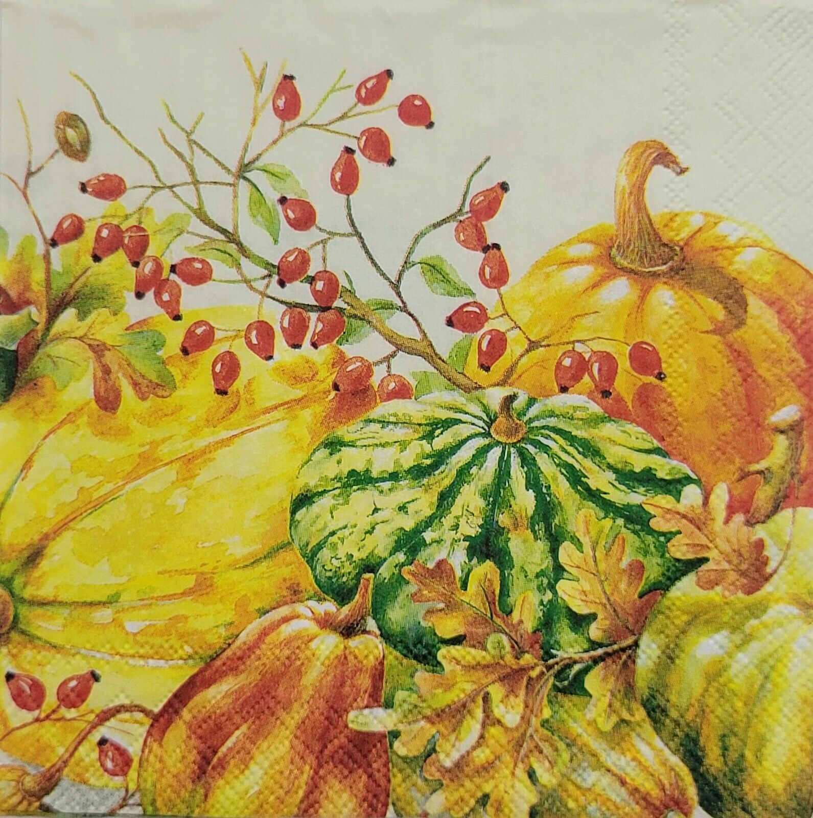 TWO Individual Paper Cocktail Decoupage Napkins - 2470 Pumpkins and Gourds