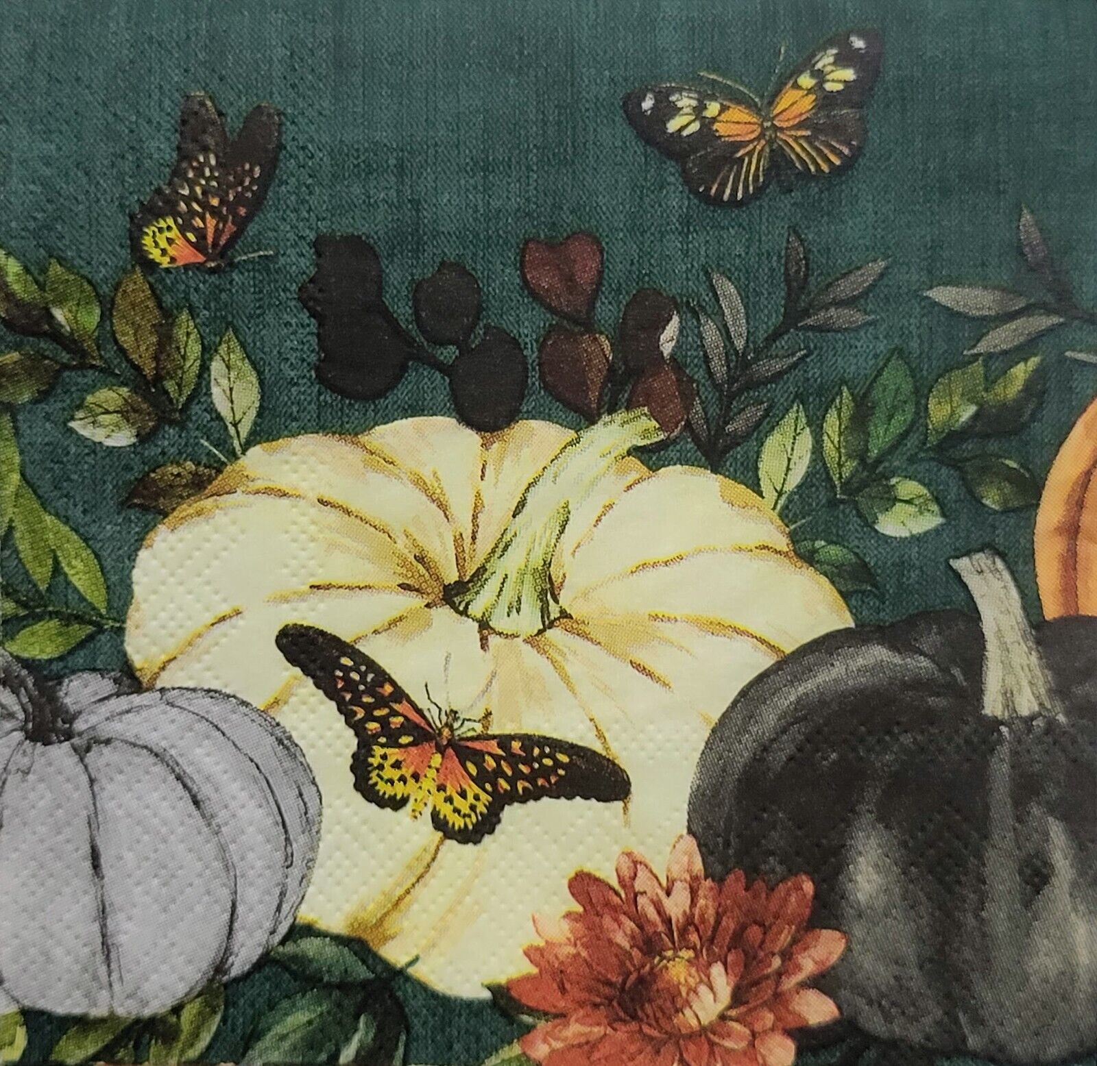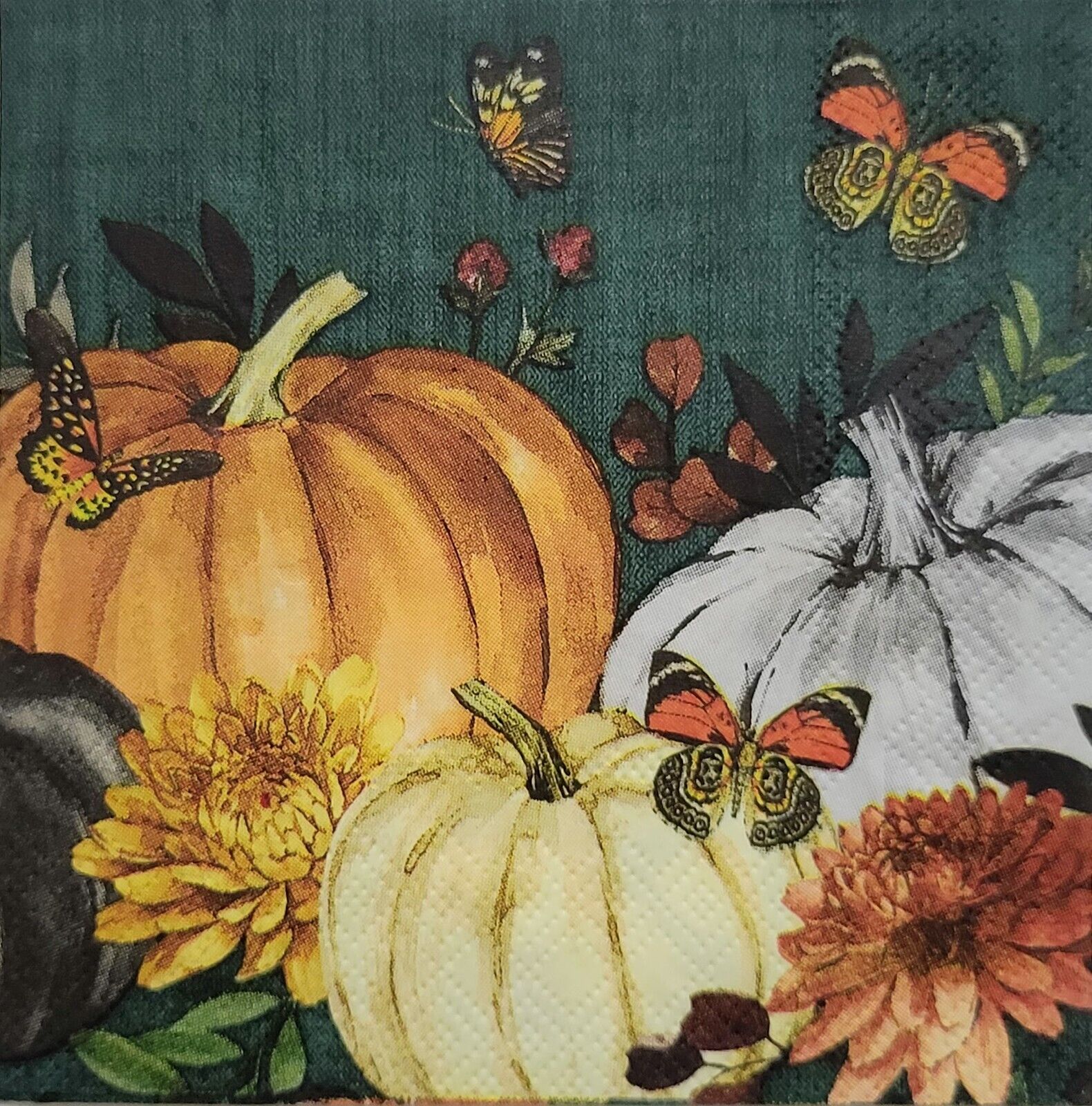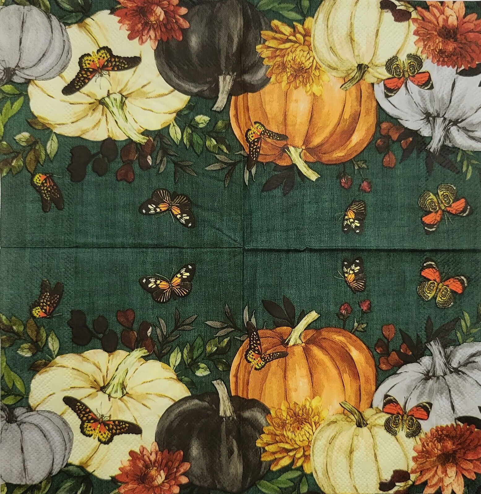 TWO Individual Paper Cocktail Decoupage Napkins - 2472 Fall's Vibrant Pumpkins