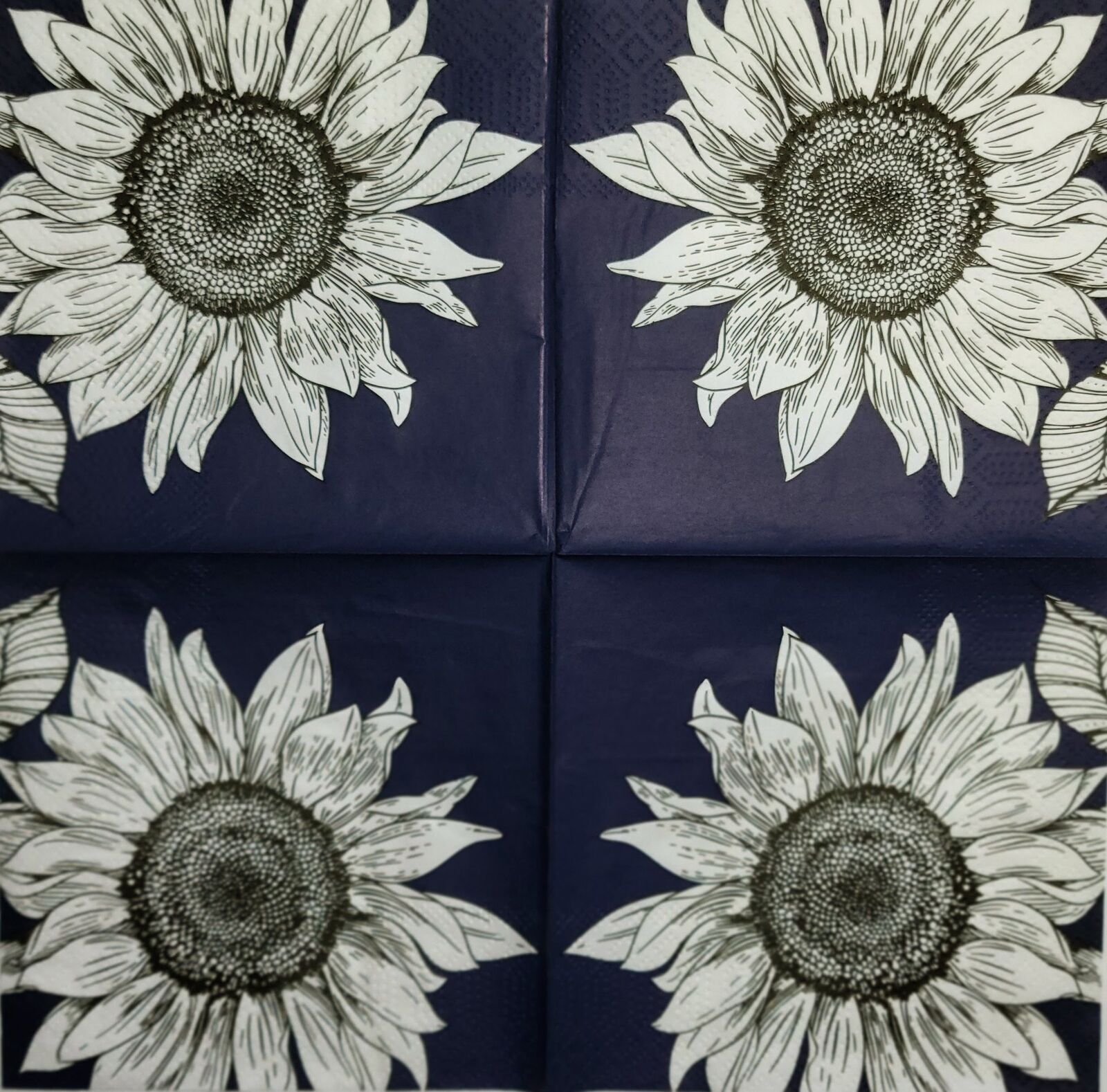 Two Individual Paper Cocktail Decoupage Napkins - 2496 Pale White Sunflower