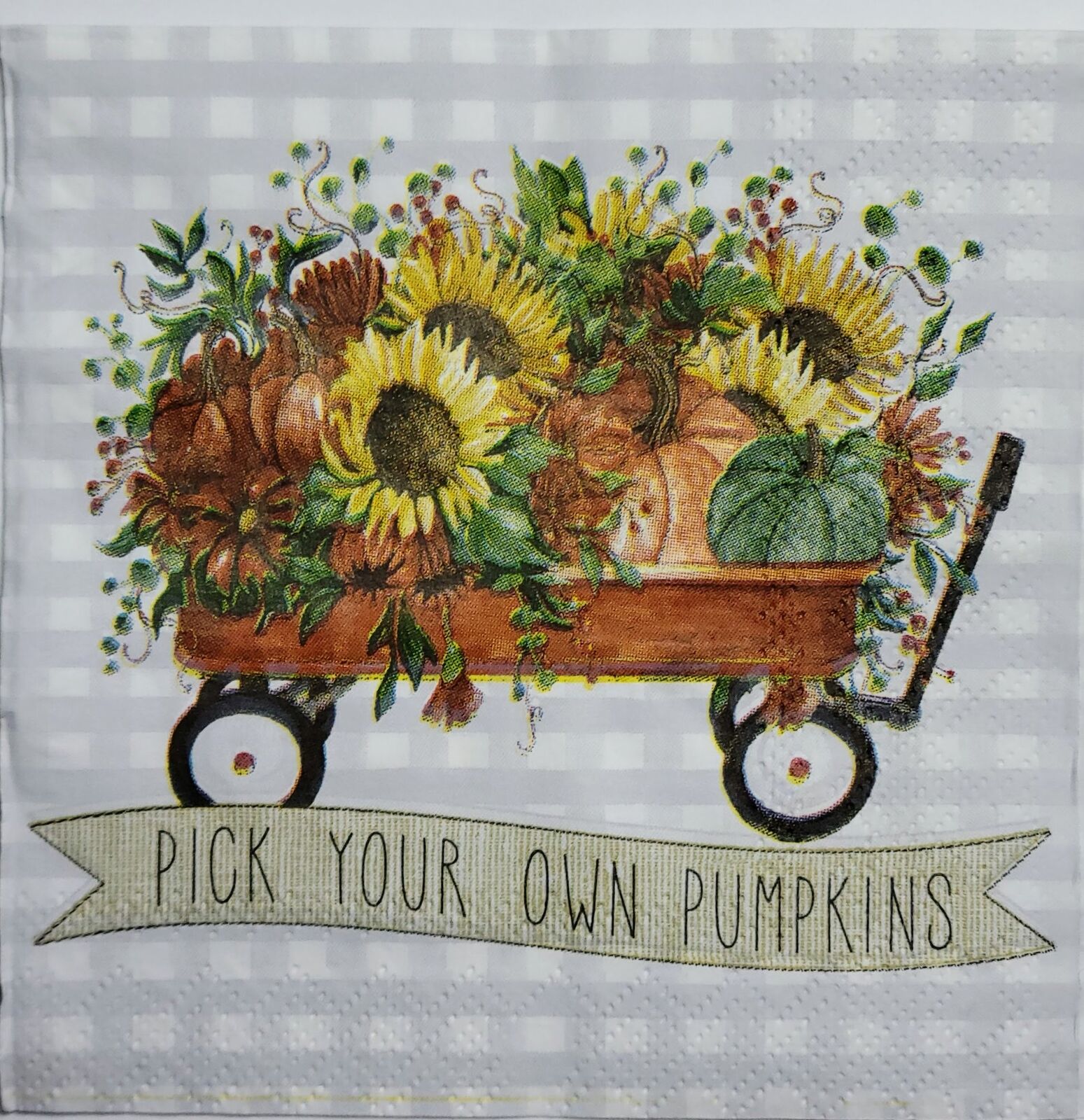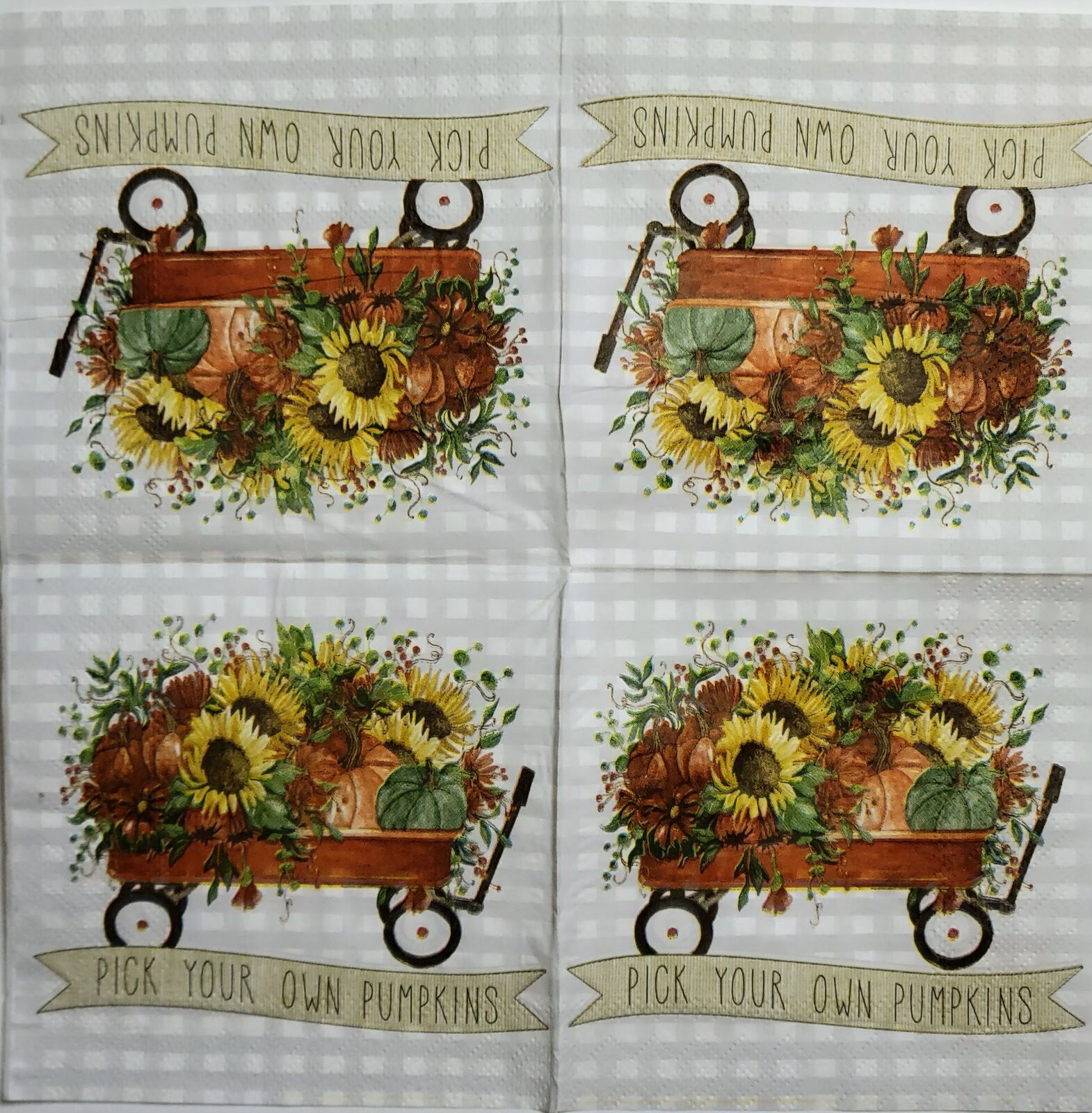 Two Individual Paper Cocktail Decoupage Napkins - 2497 Pumpkin Floral Wagon