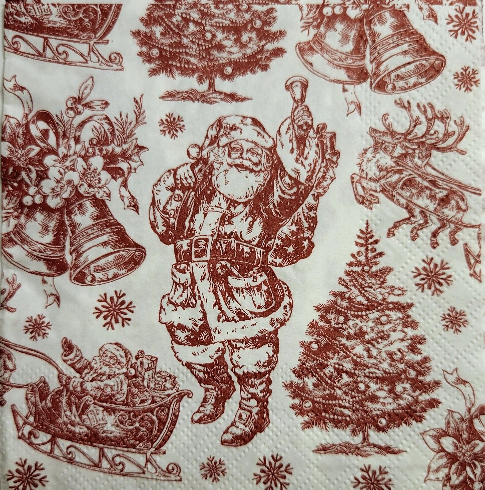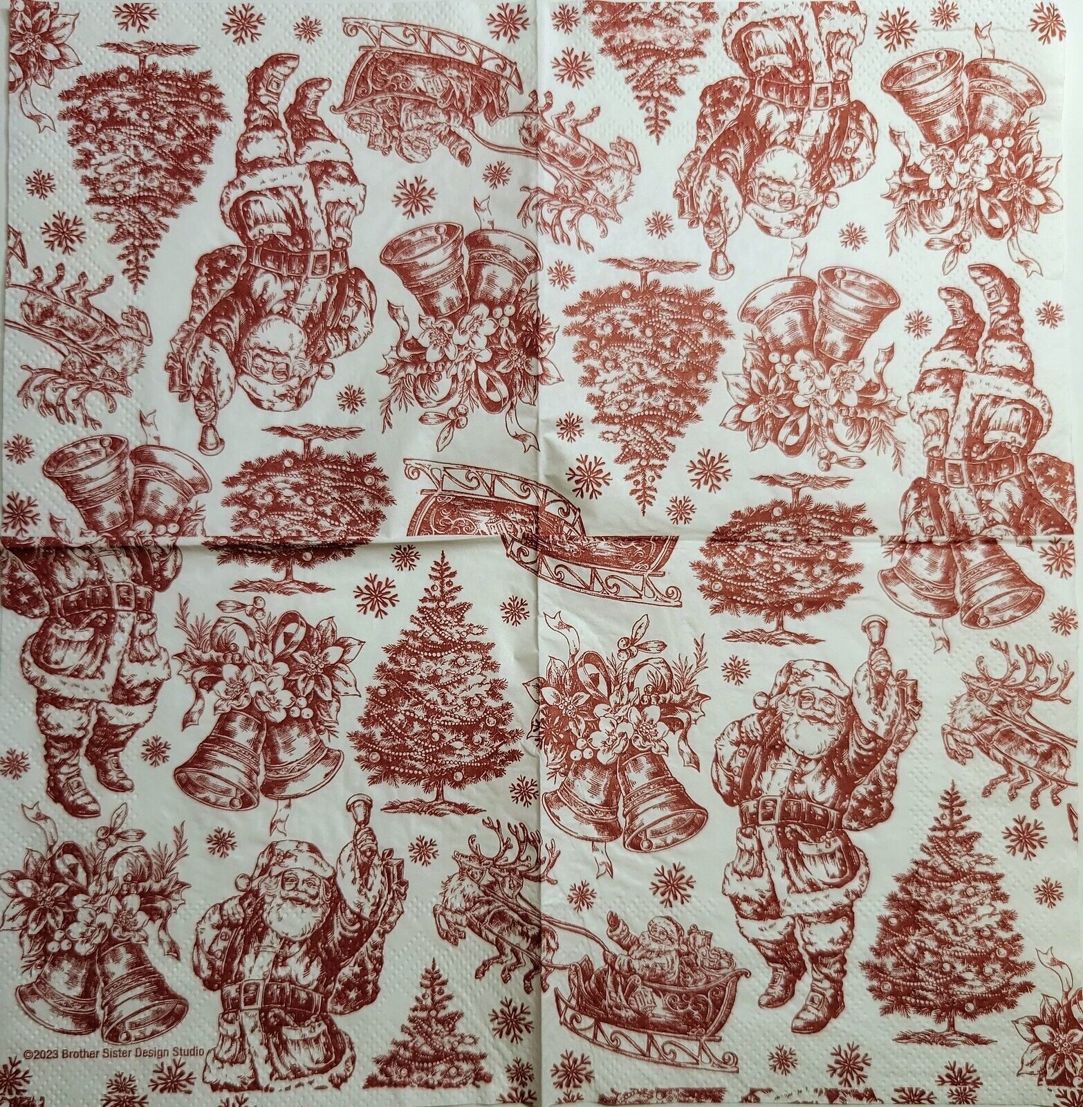 Two Individual Paper Cocktail Decoupage Napkins - 2546 Red Vintage Christmas