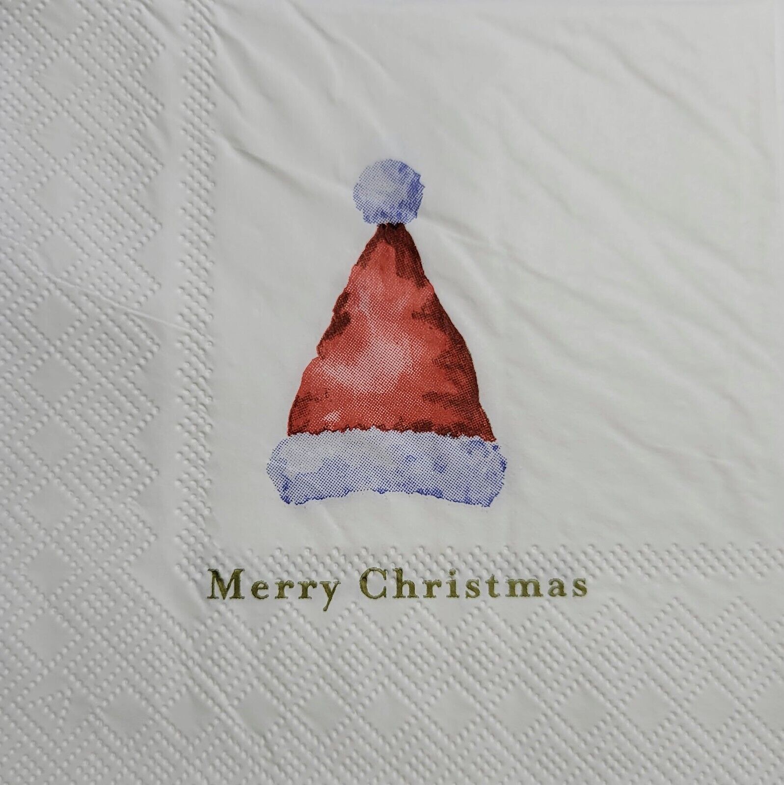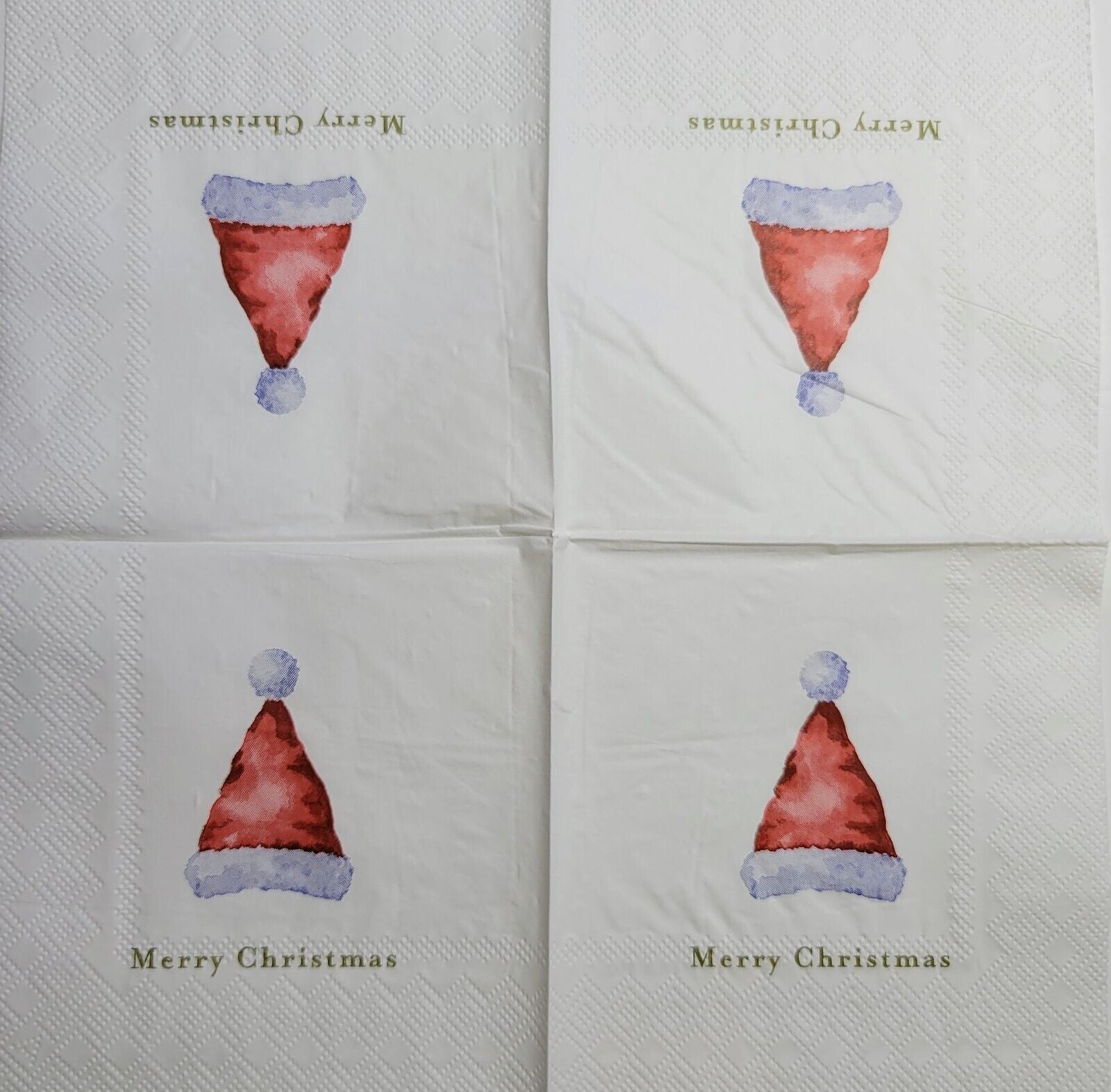 TWO Individual Paper Cocktail Decoupage Napkins - 2550 Christmas Santa Hat