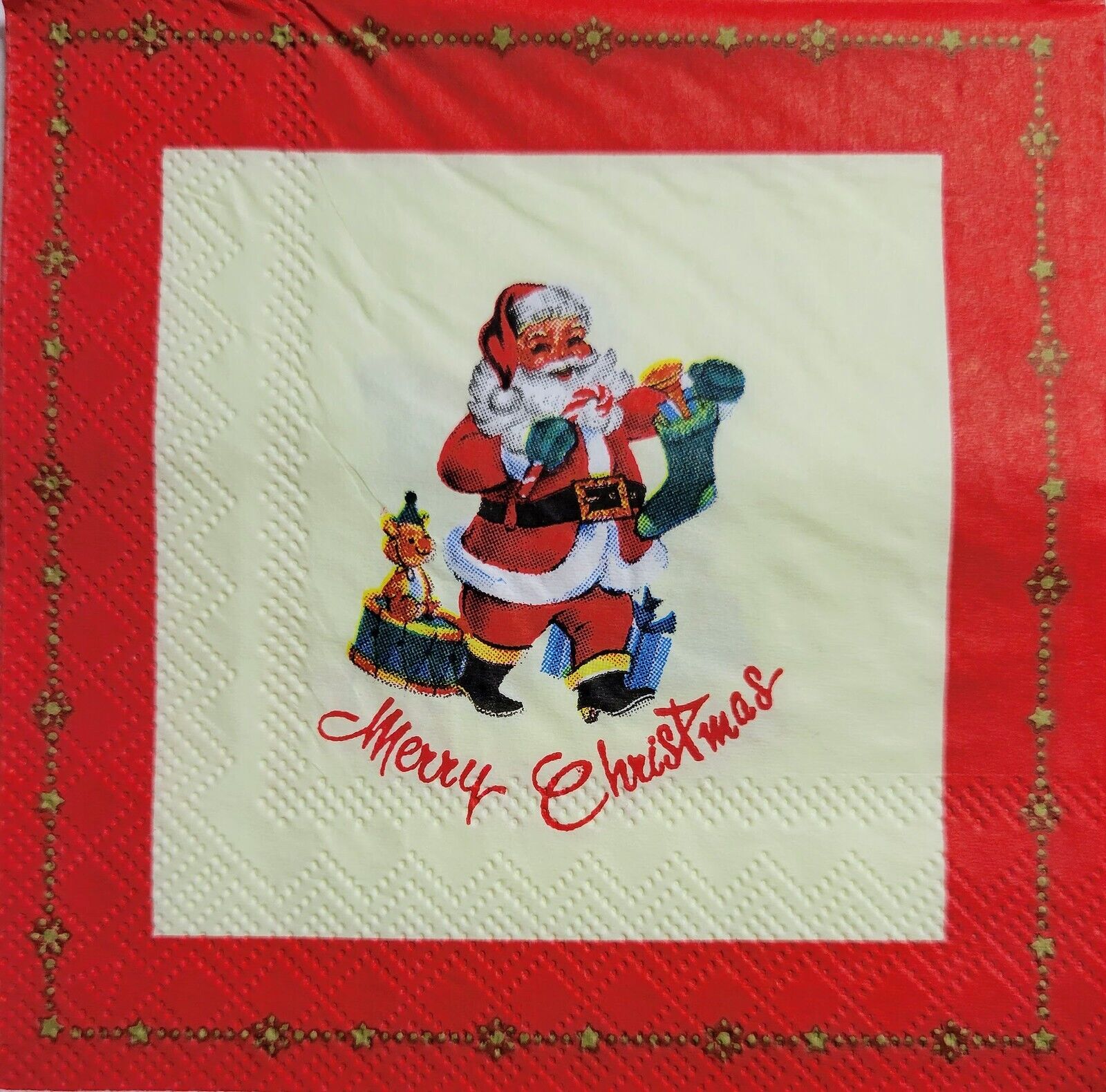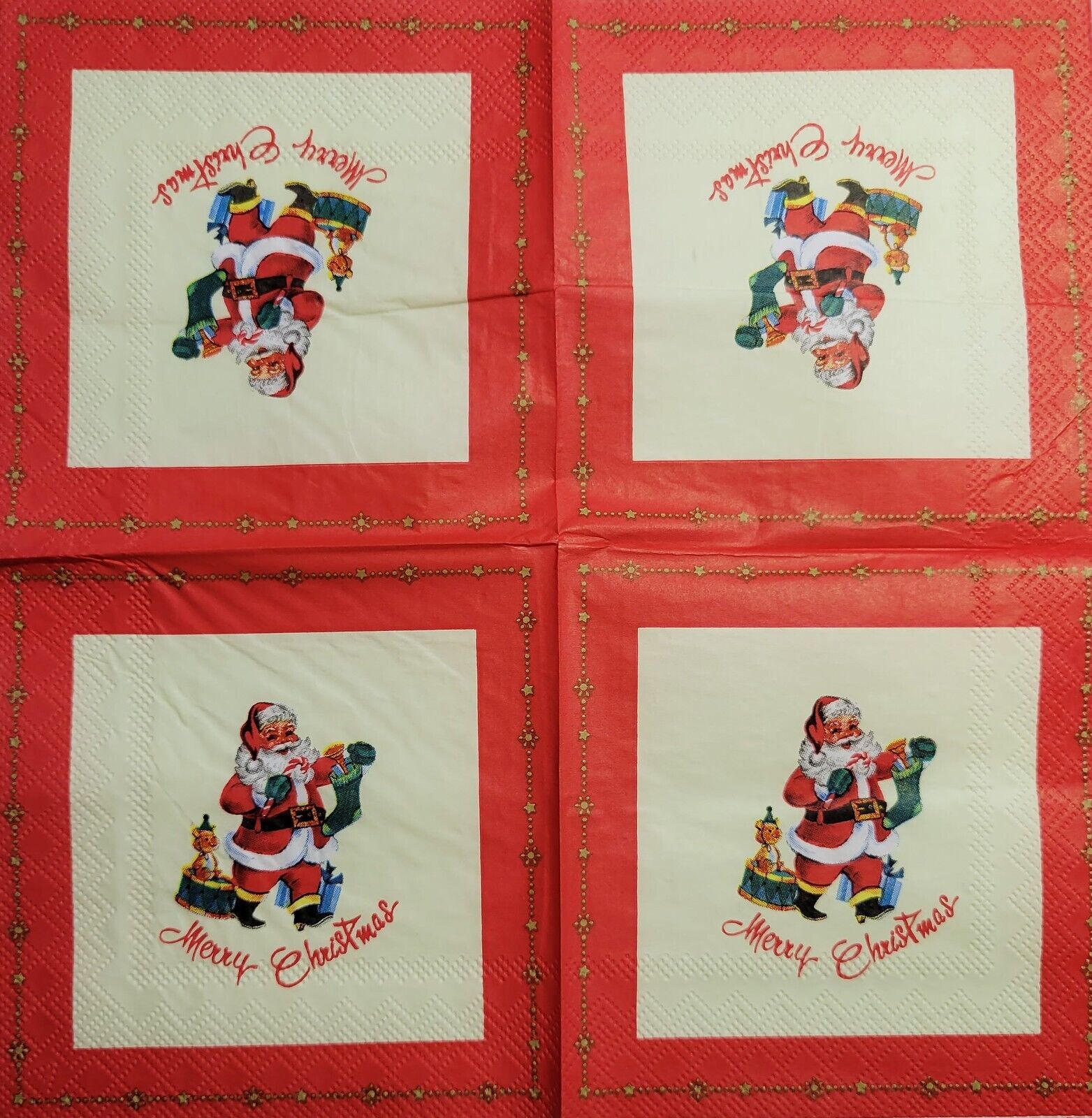TWO Individual Paper Cocktail Decoupage Napkins - 2554 Vintage Christmas Santa