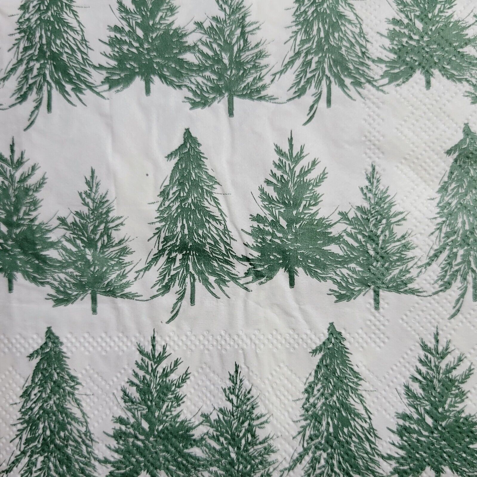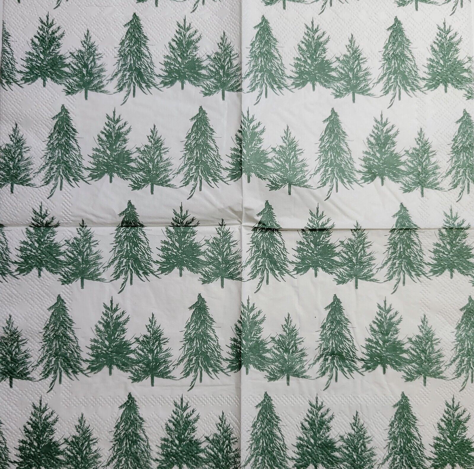 TWO Individual Paper Cocktail Decoupage Napkins - 2560 Green Pine Tree Forest