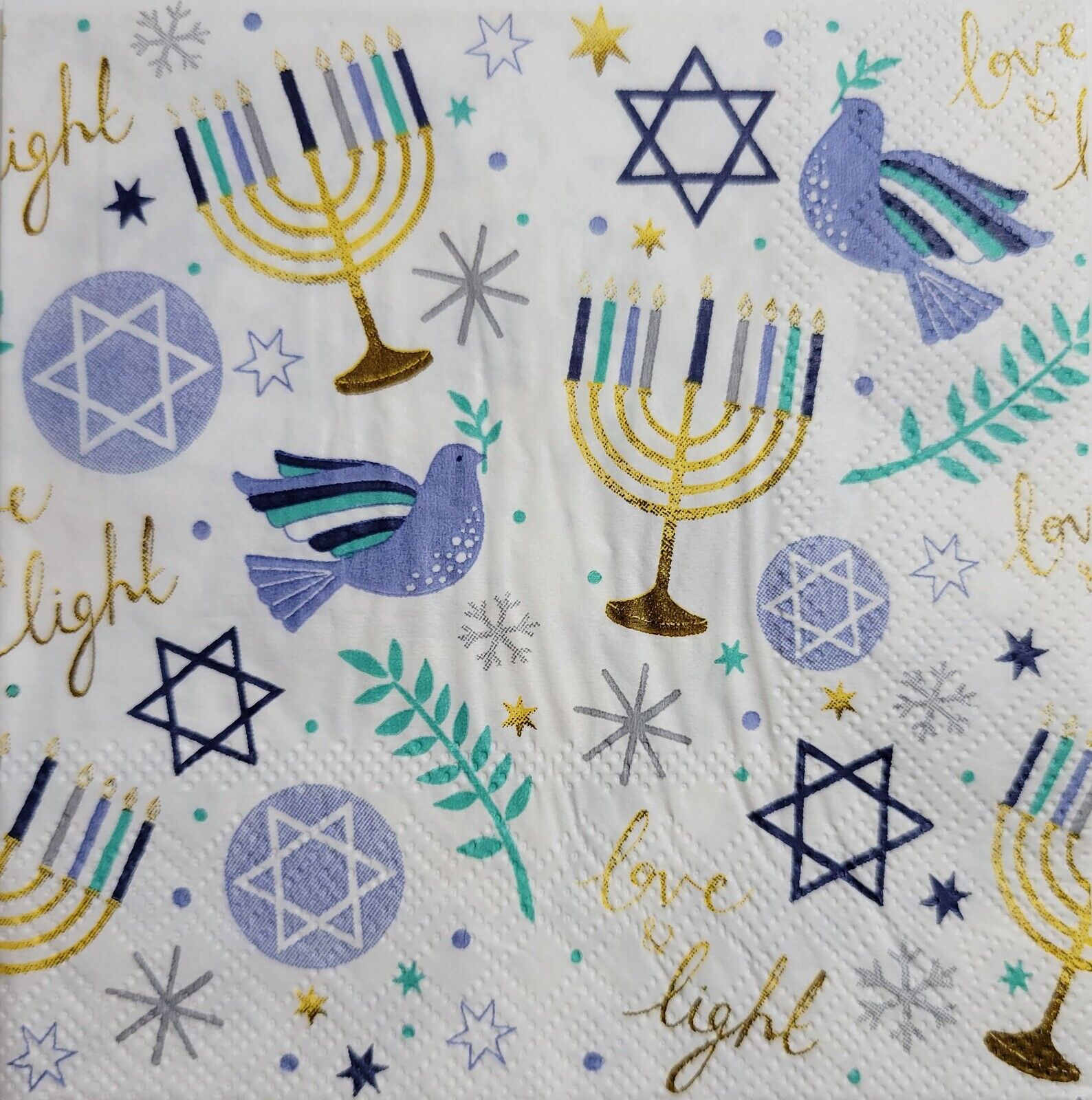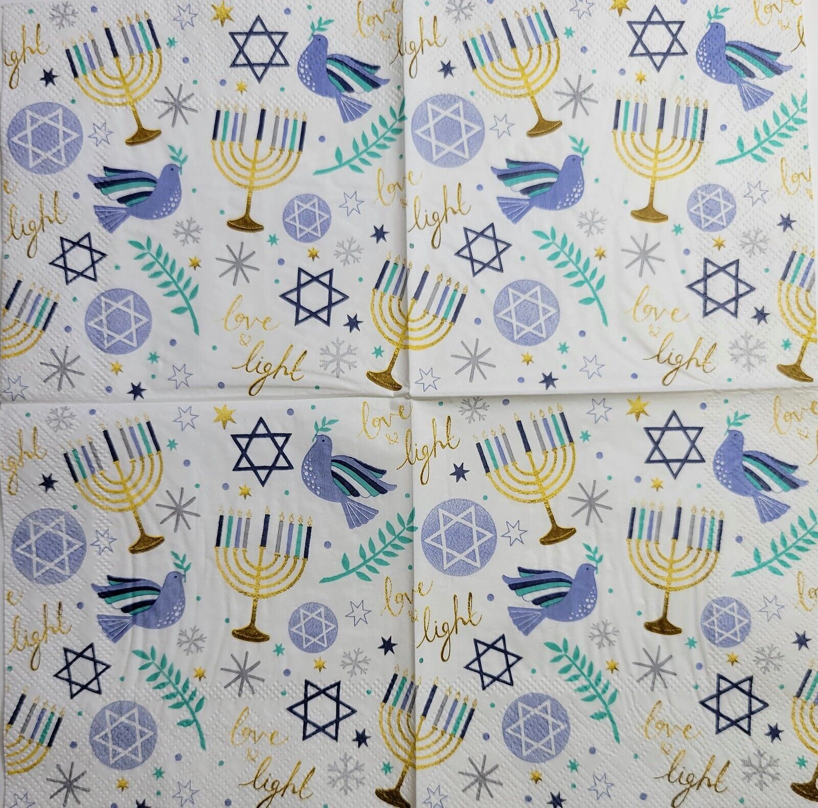 TWO Individual Paper Cocktail Decoupage Napkins - 2566 Hannukah Love and Light