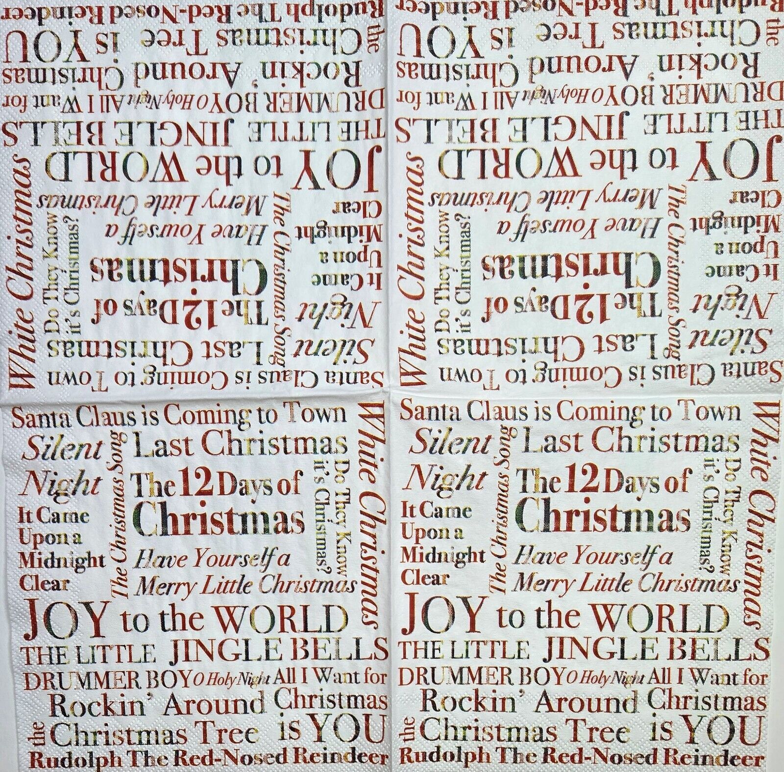 TWO Individual Paper Cocktail Decoupage Napkins - 2583 Christmas Songs