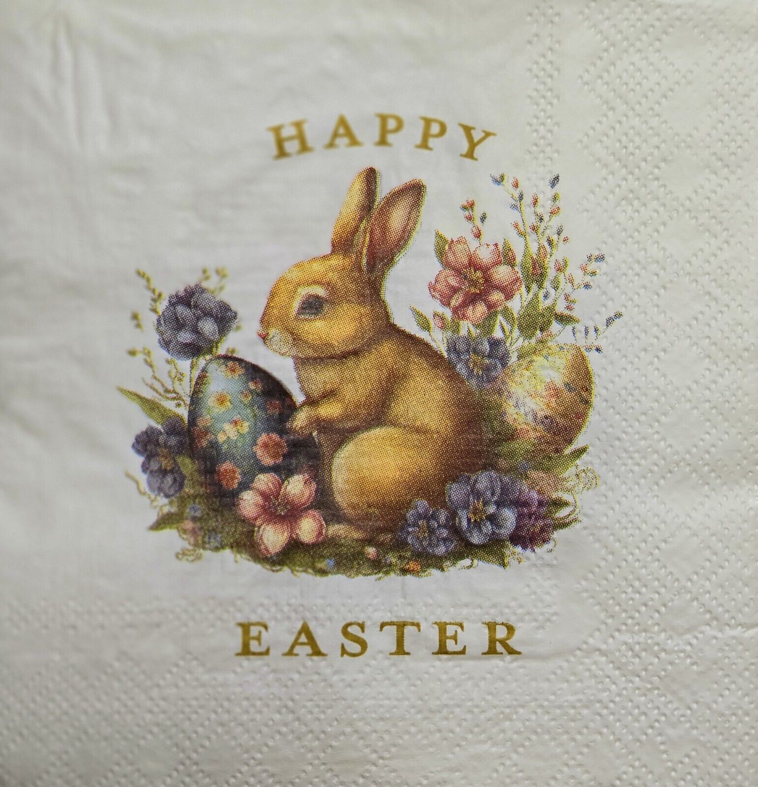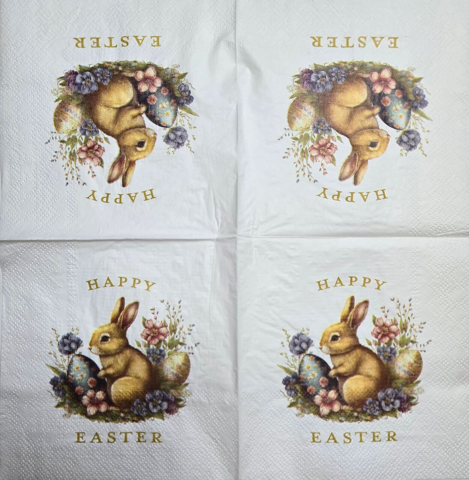 TWO Individual Paper Cocktail Decoupage Napkins - 2605 Happy Easter Garden Bunny