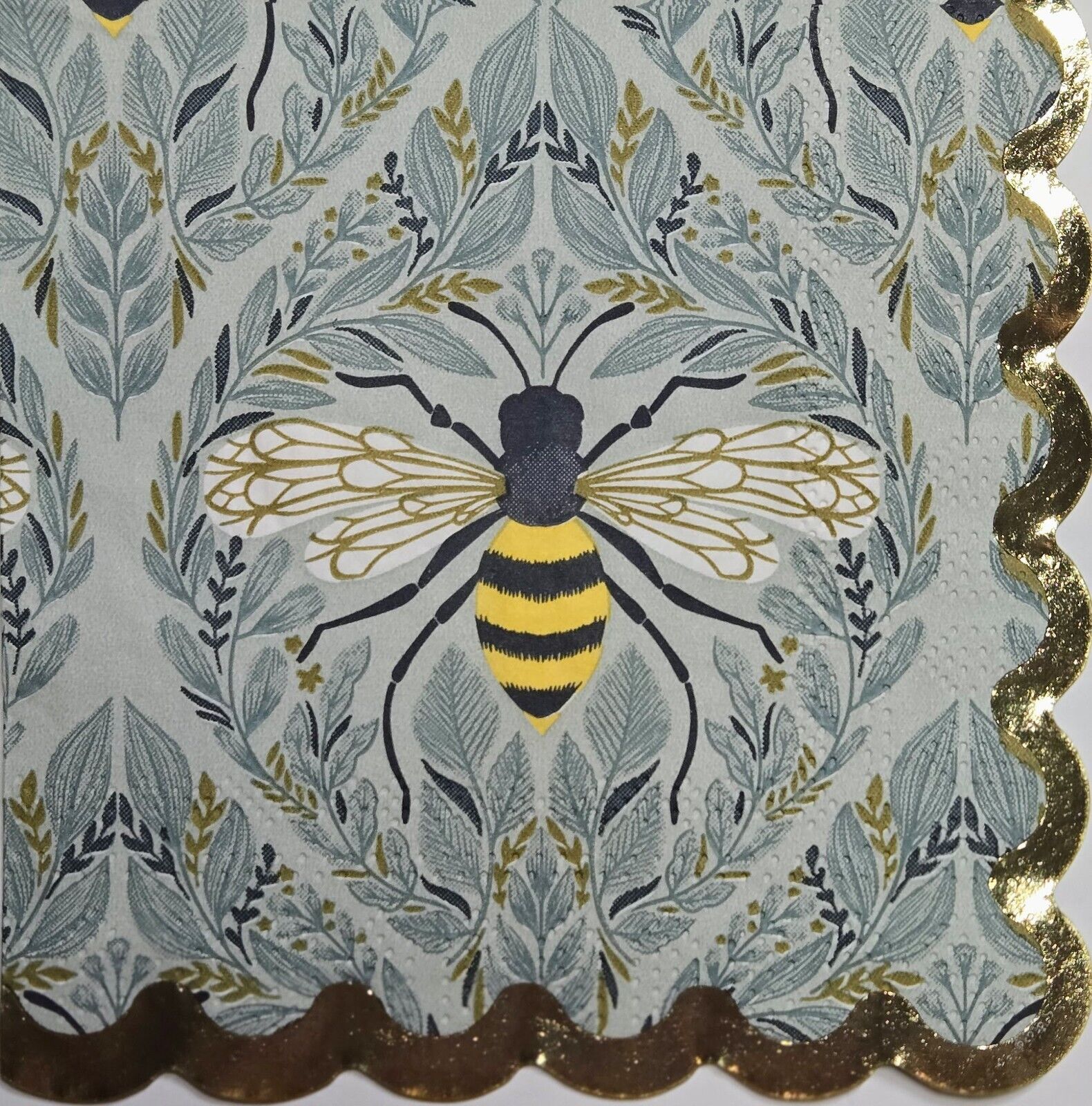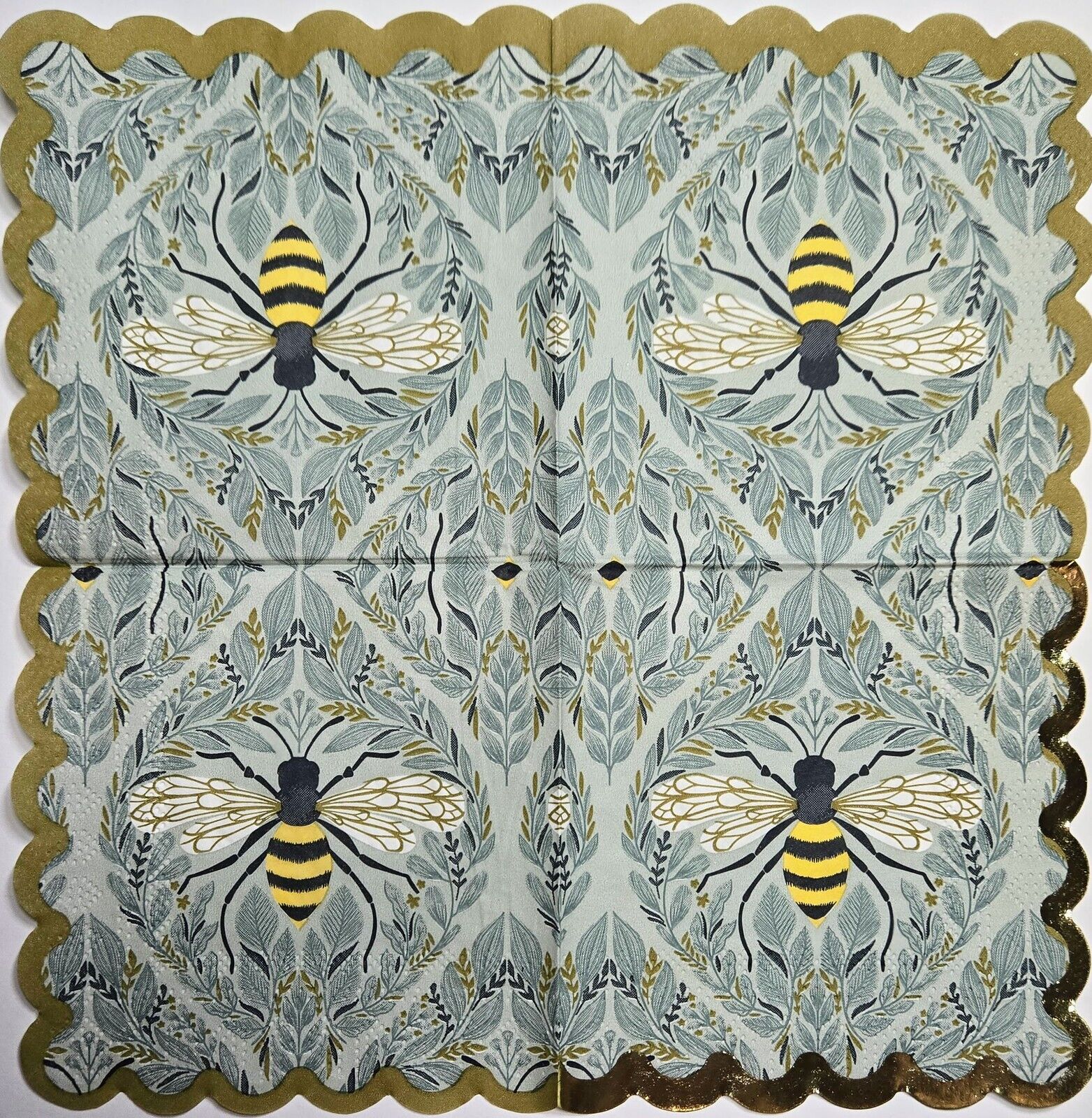 TWO Individual Paper Cocktail Decoupage Napkins - 2610 Bee on Gold Foil Scallop