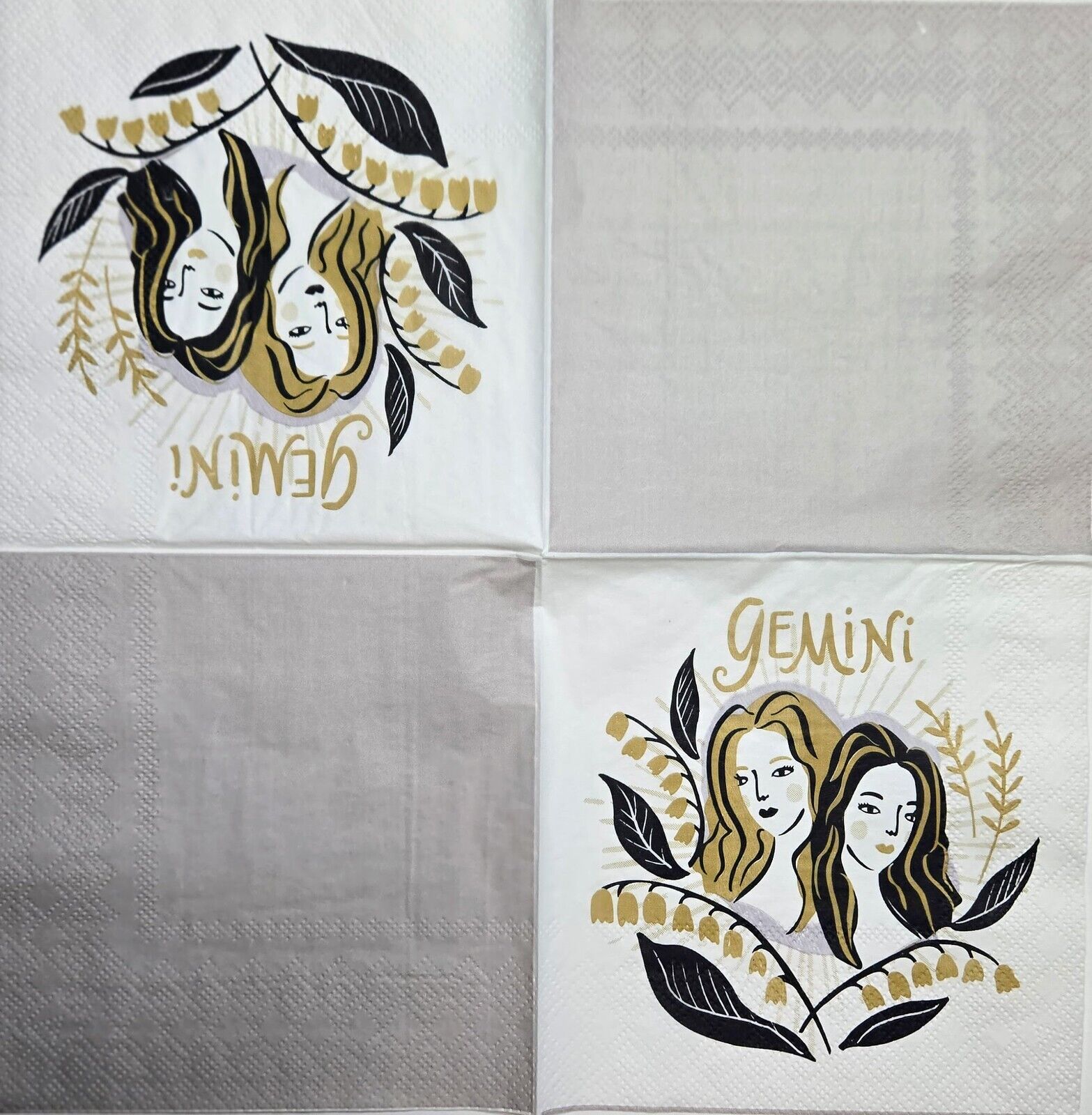 TWO Individual Paper Cocktail Decoupage Napkins - 2611 Zodiac Gemini Twins