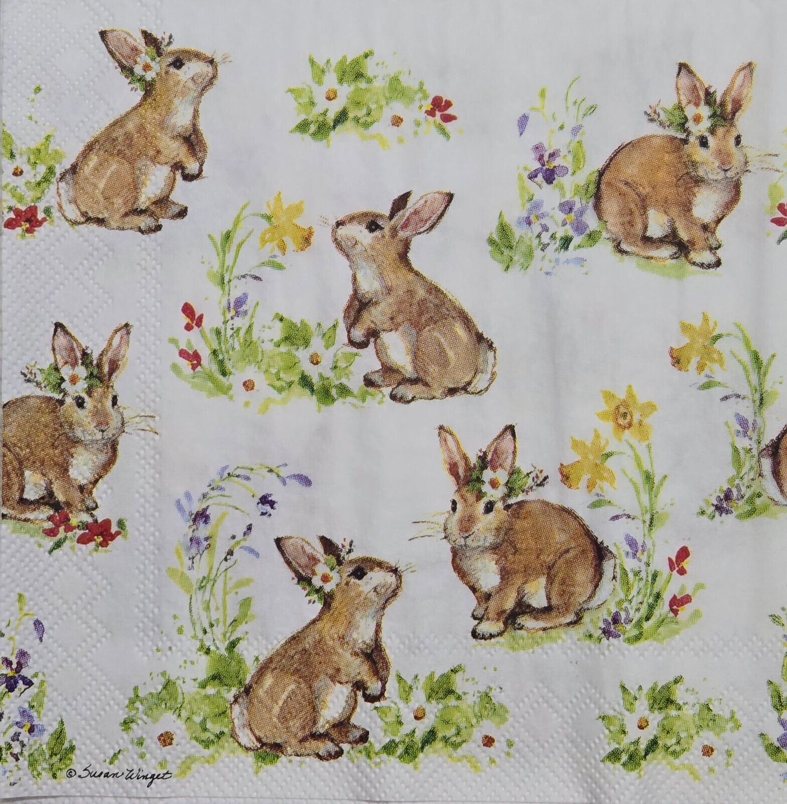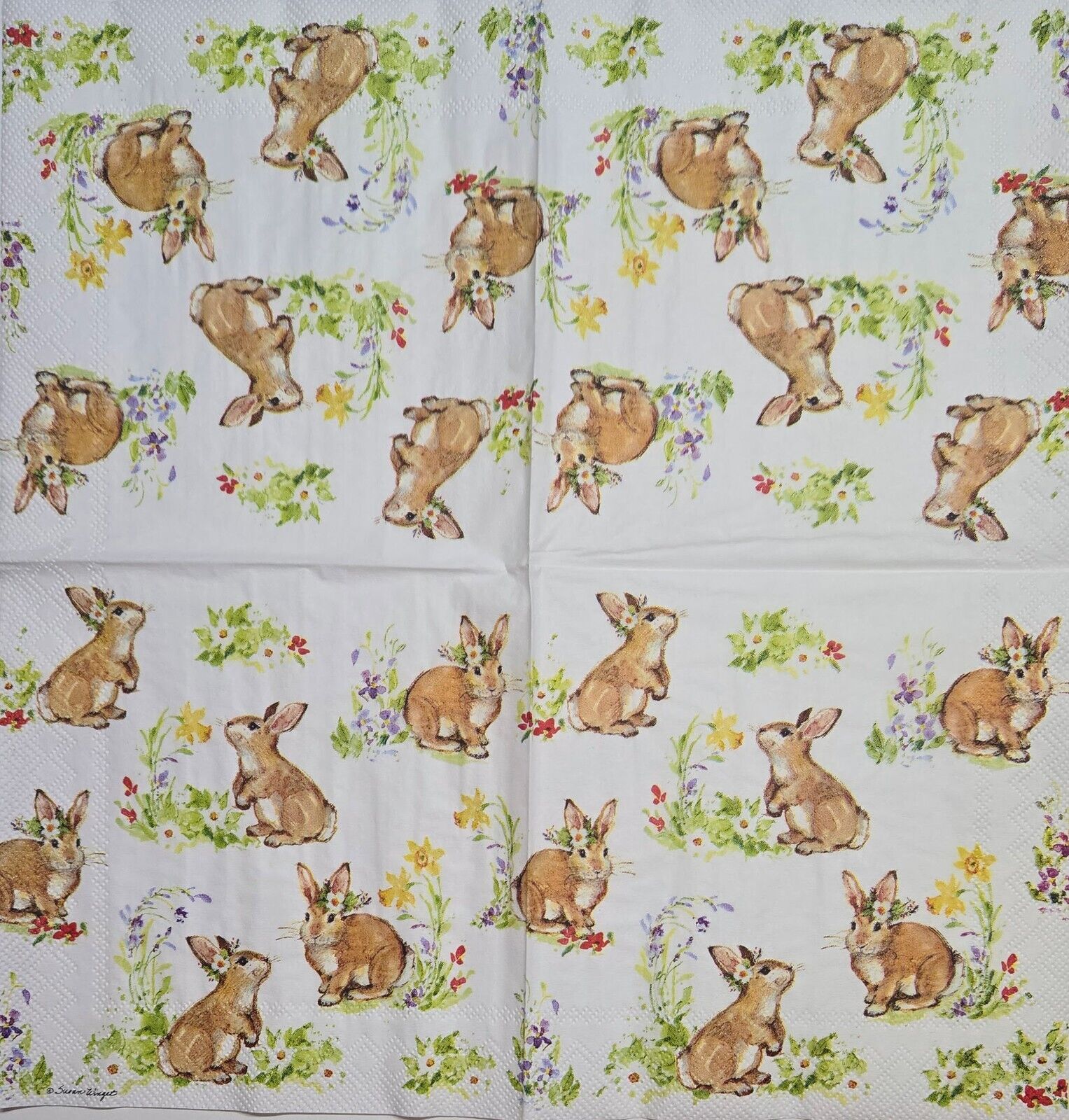 TWO Individual Paper Cocktail Decoupage Napkins - 2613 Garden Bunny Poses