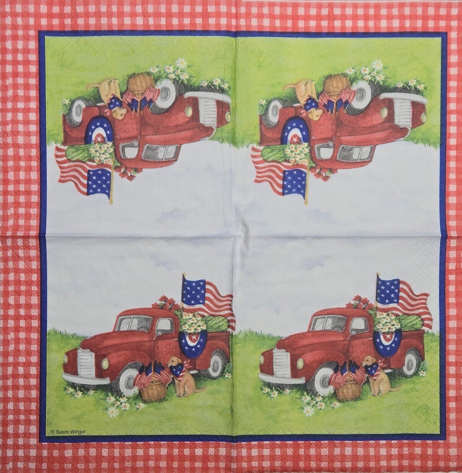 TWO Individual Paper Cocktail Decoupage Napkins - 2628 Patriotic Dog and Truck