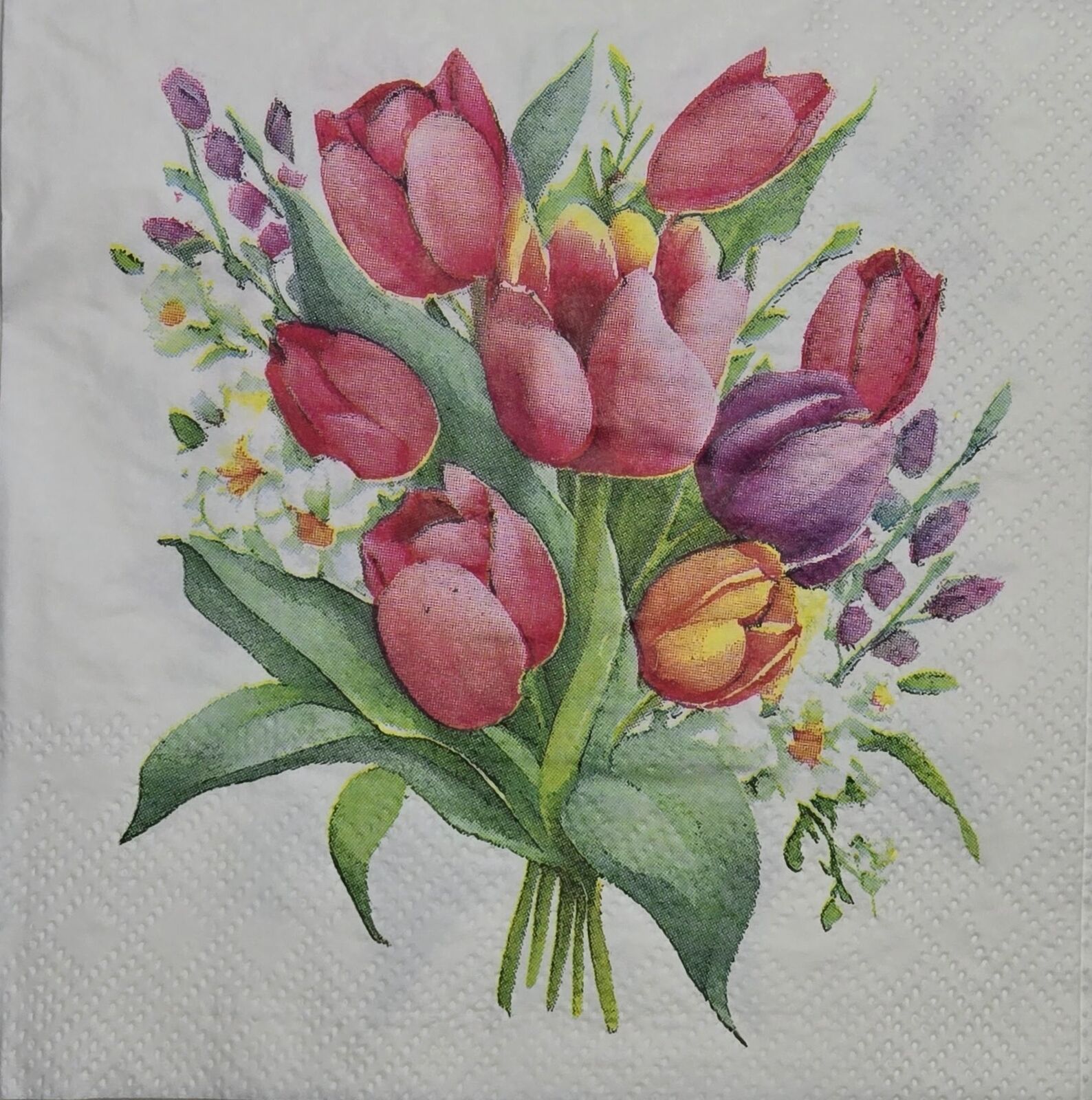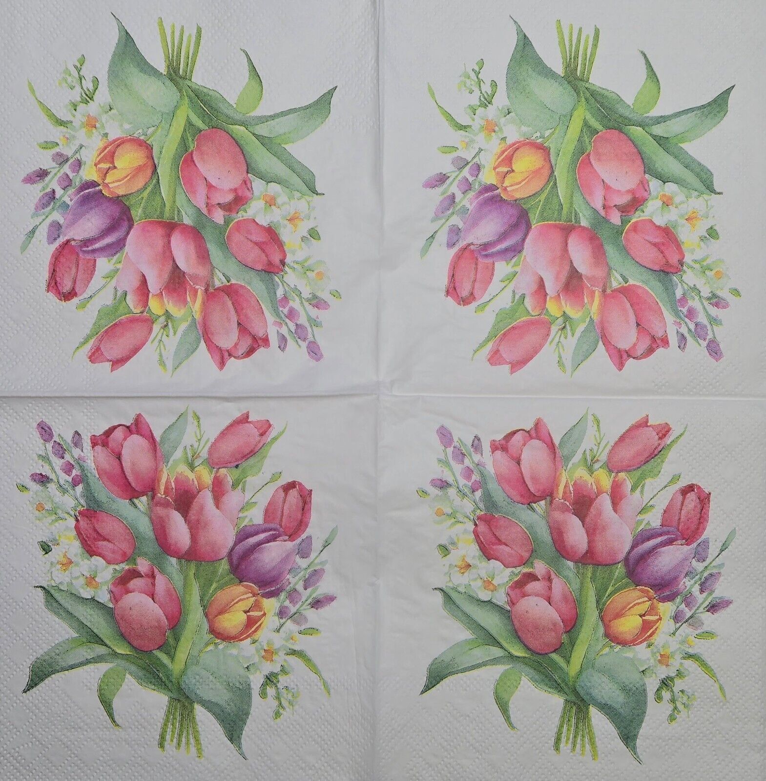 TWO Individual Paper Cocktail Decoupage Napkins - 2632 Summer Tulip Bouquet