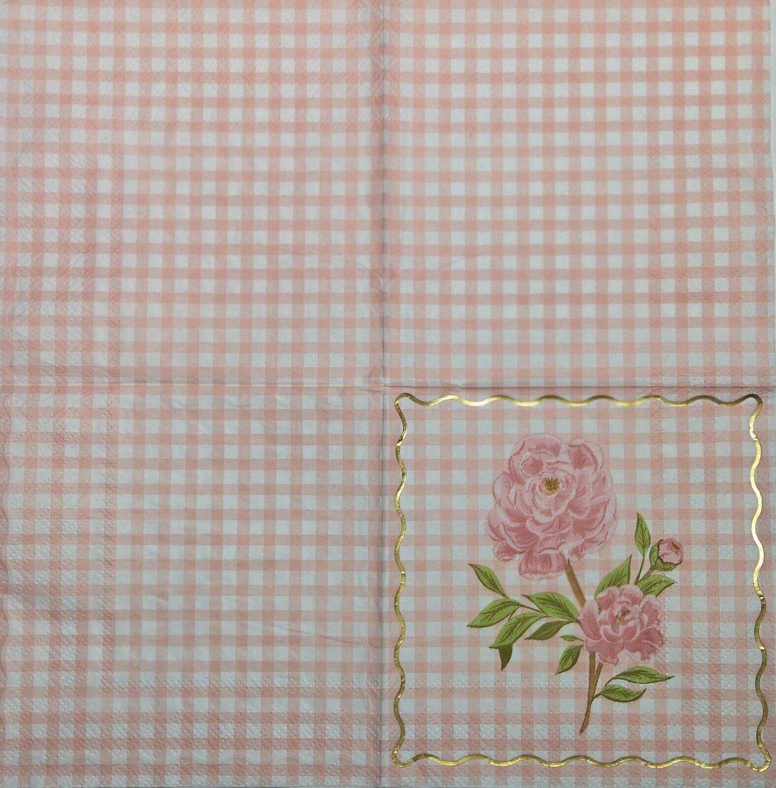 TWO Individual Paper Cocktail Decoupage Napkins - 2768 Pink Checkered Peonies