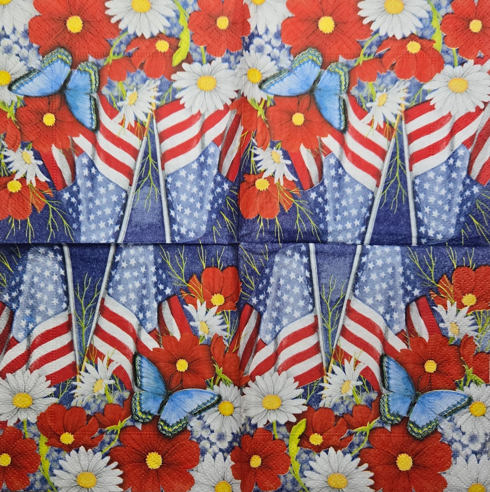 TWO Individual Paper Cocktail Decoupage Napkins - 2773 Red White & Bloom Flags