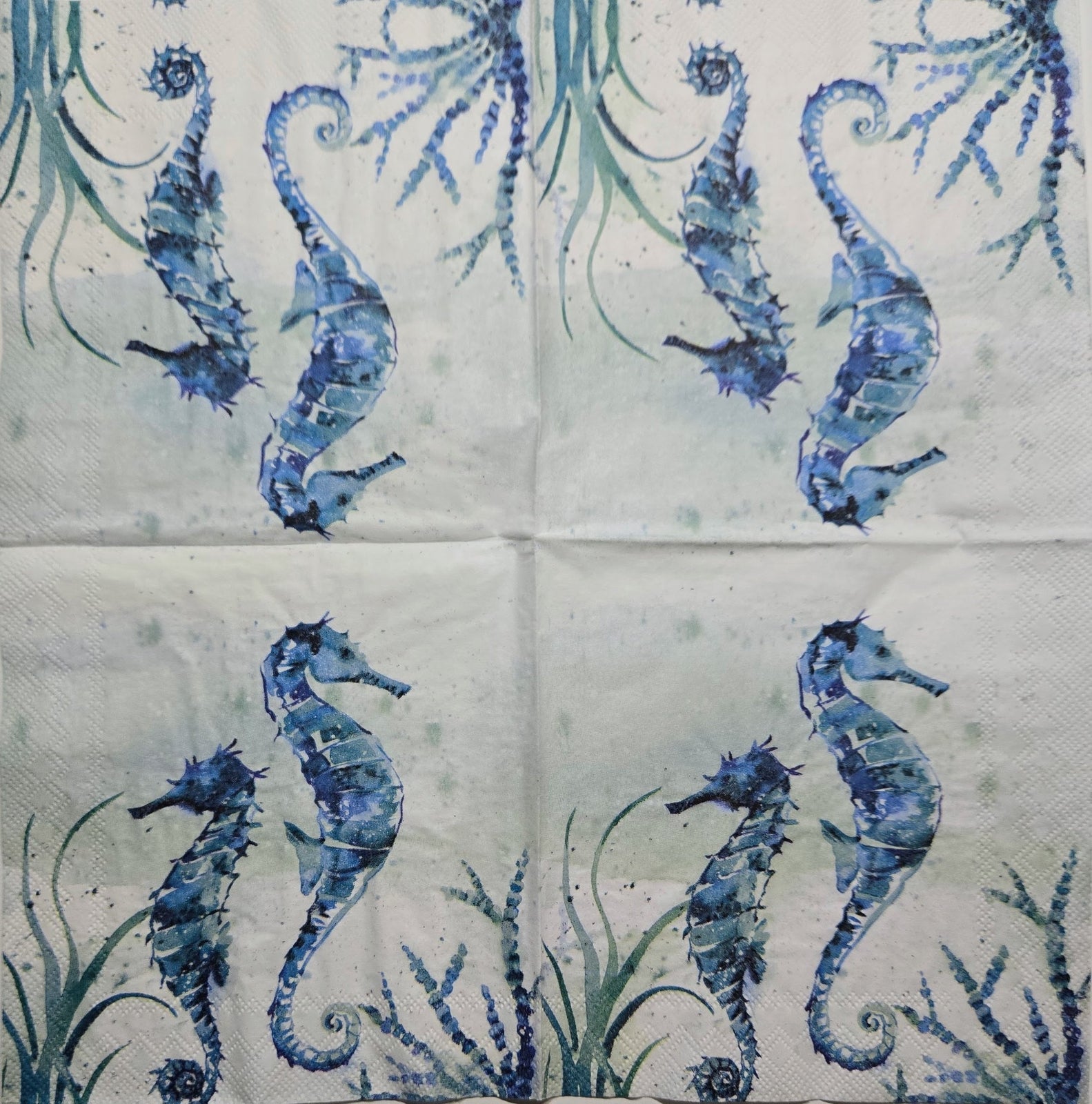TWO Individual Paper Cocktail Decoupage Napkins- 2779 Aquaworld Blue Sea Horses