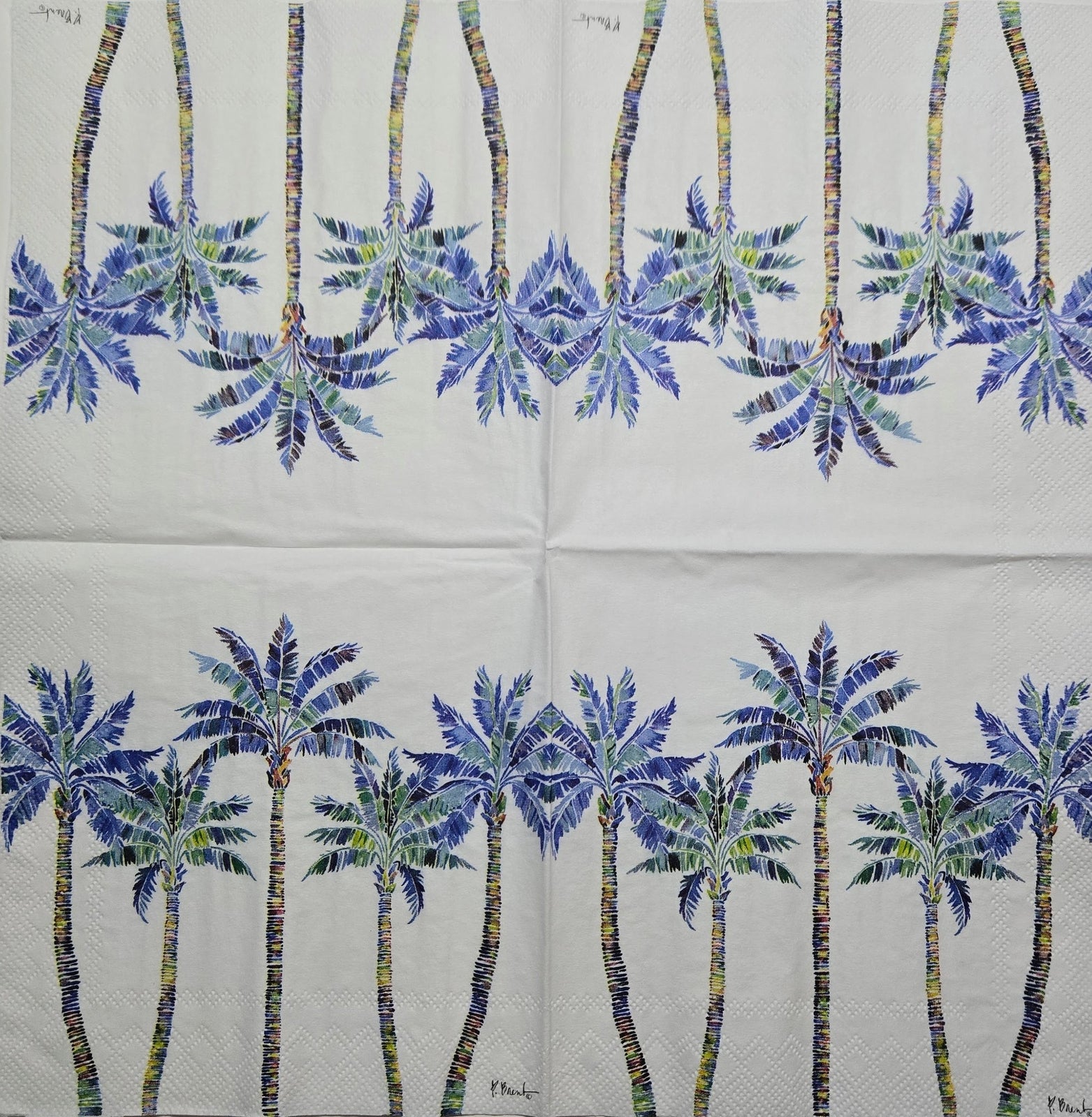 TWO Individual Paper Cocktail Decoupage Napkins - 2783 Blue Tahiti Palm Trees