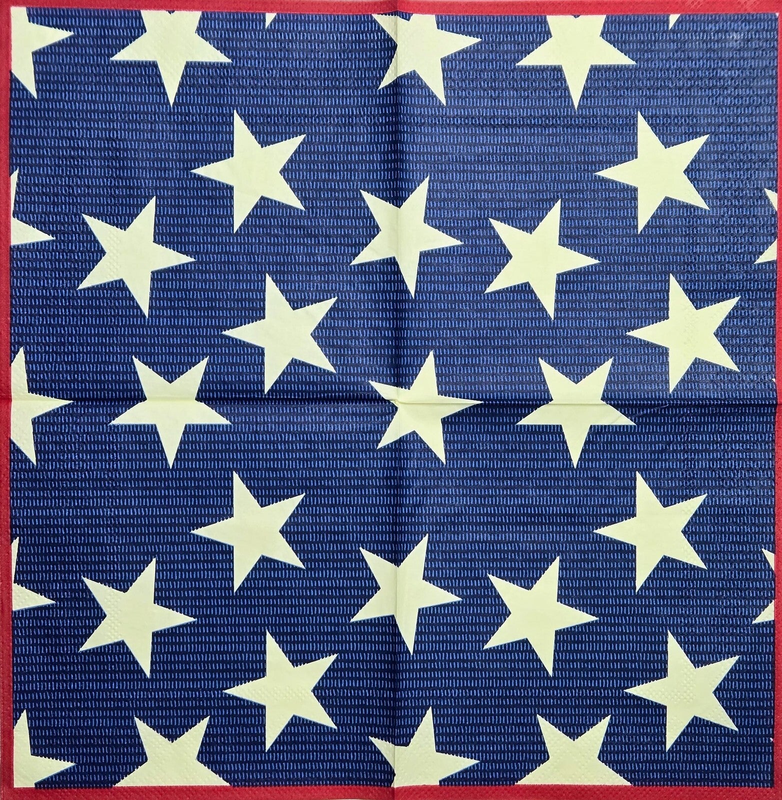 TWO Individual Paper Cocktail Decoupage Napkins - 2812 Red White and Blue Stars