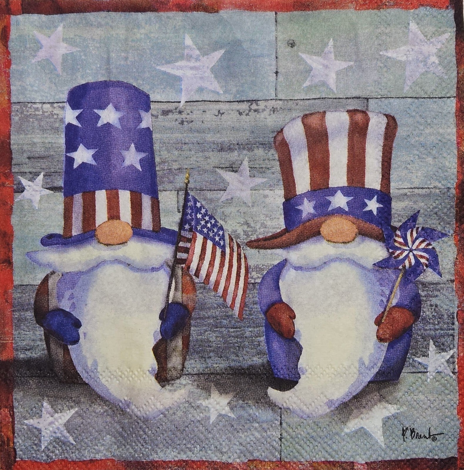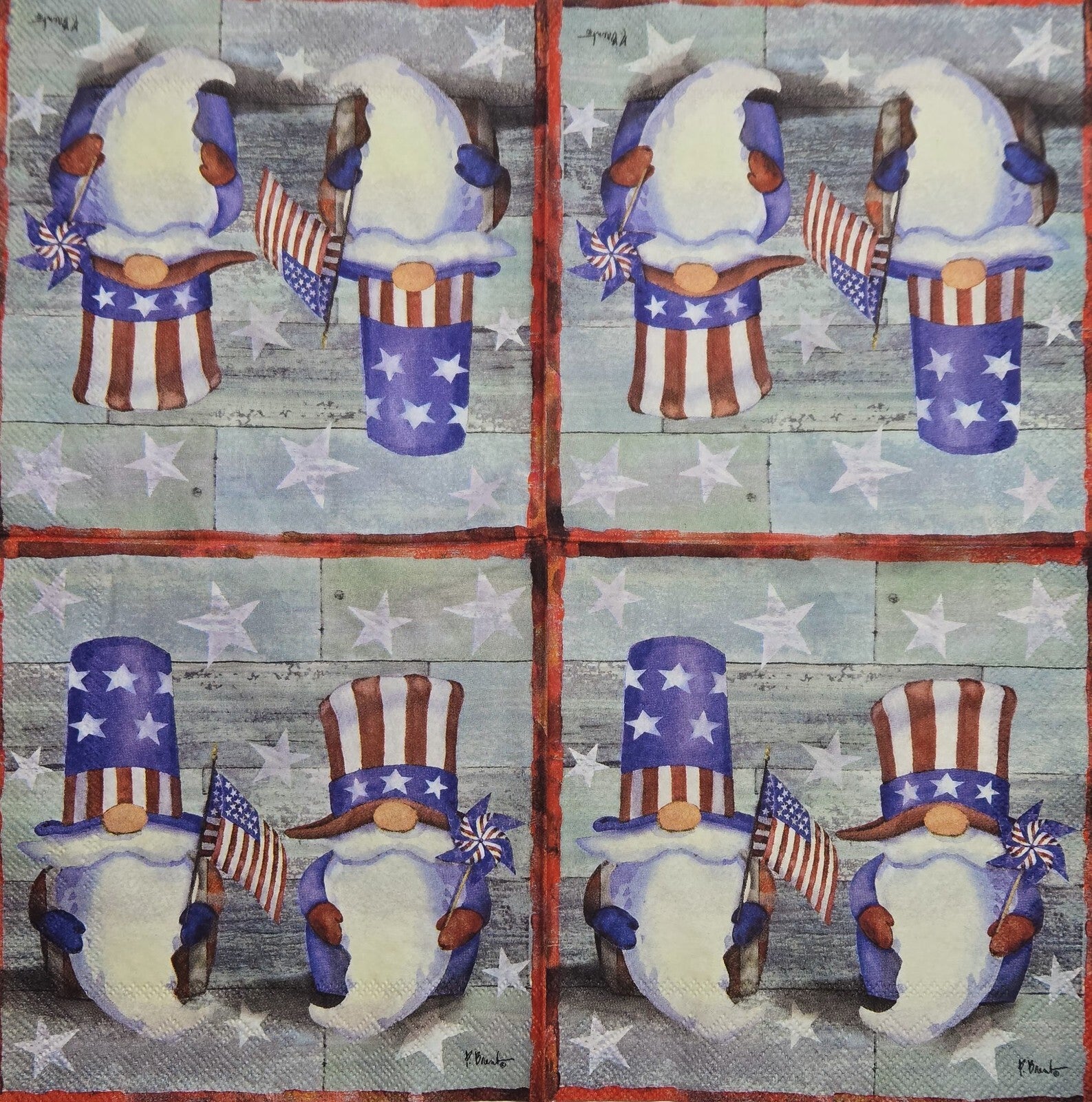 TWO Individual Paper Cocktail Decoupage Napkins - 2823 4th of July Uncle Gnomes