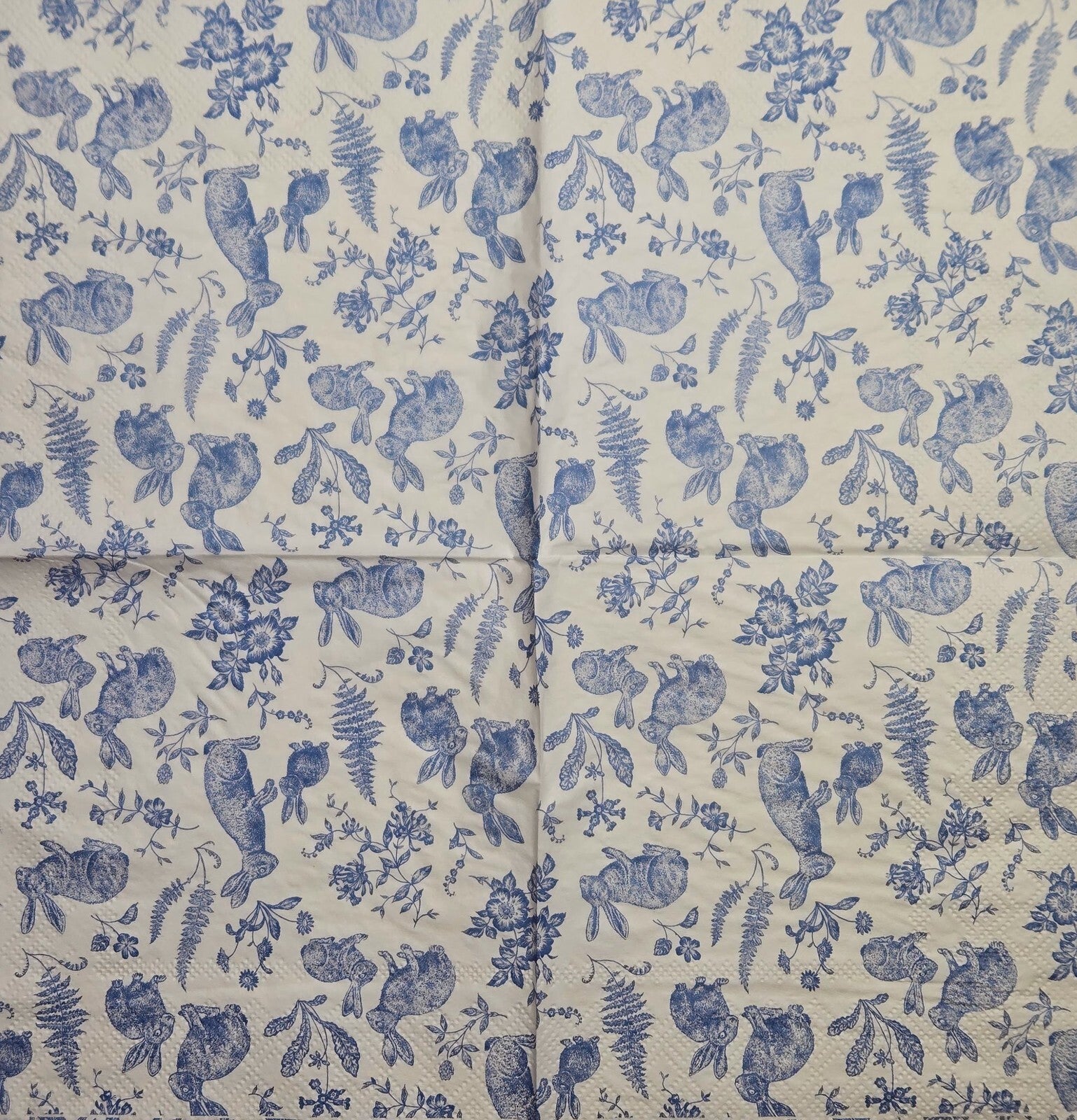 TWO Individual Paper Cocktail Decoupage Napkins - 2824 Blue Bunny Garden