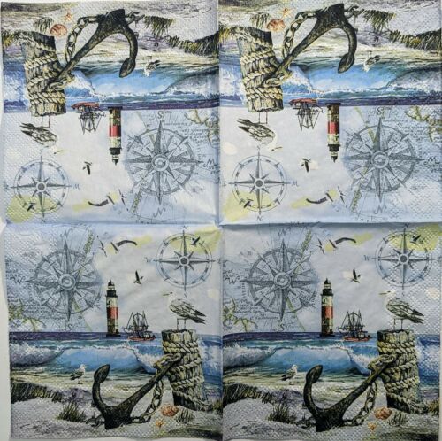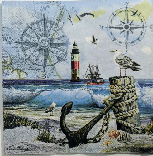 TWO Individual Paper Cocktail Decoupage Napkins- Anchorage Lighthouse Beach 1317