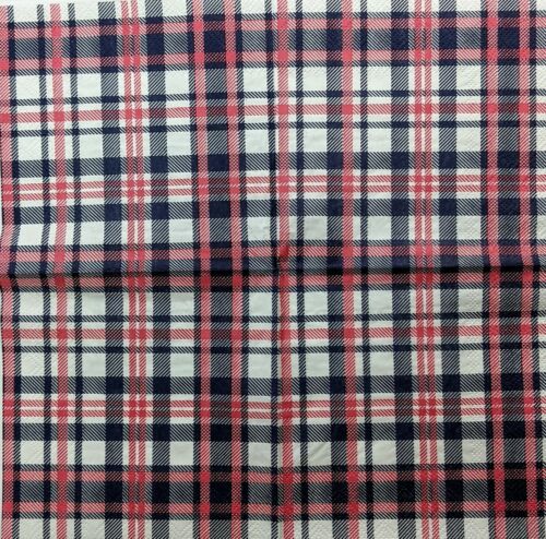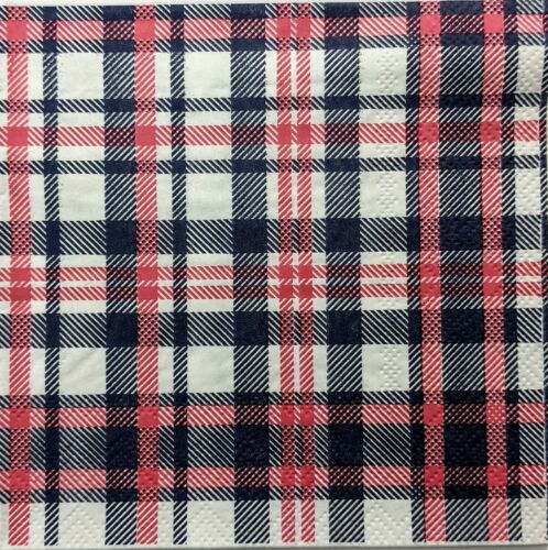 TWO Individual Paper Cocktail Decoupage Napkins - Bahama Plaid Black/Red1292