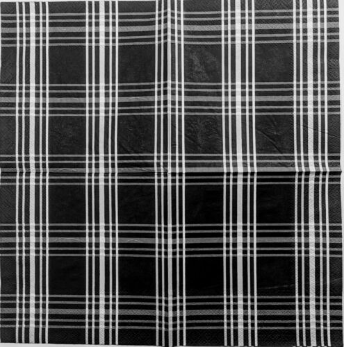 TWO Individual Paper Cocktail/Party 4.75" x 4.75" 3-ply Decoupage Napkin - Black And White Plaid