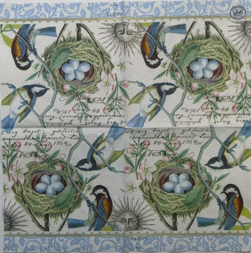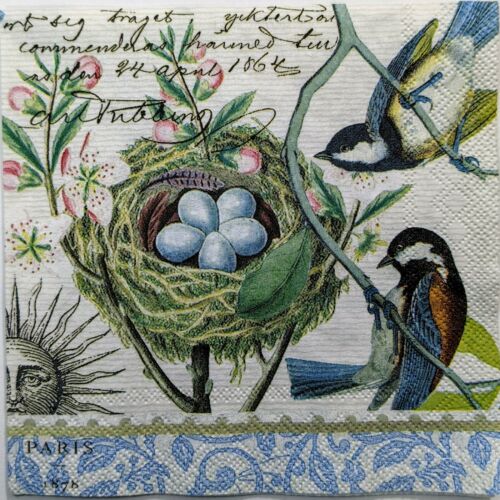 TWO Individual Paper Cocktail Decoupage Napkins- Blue Bird Nest 1155