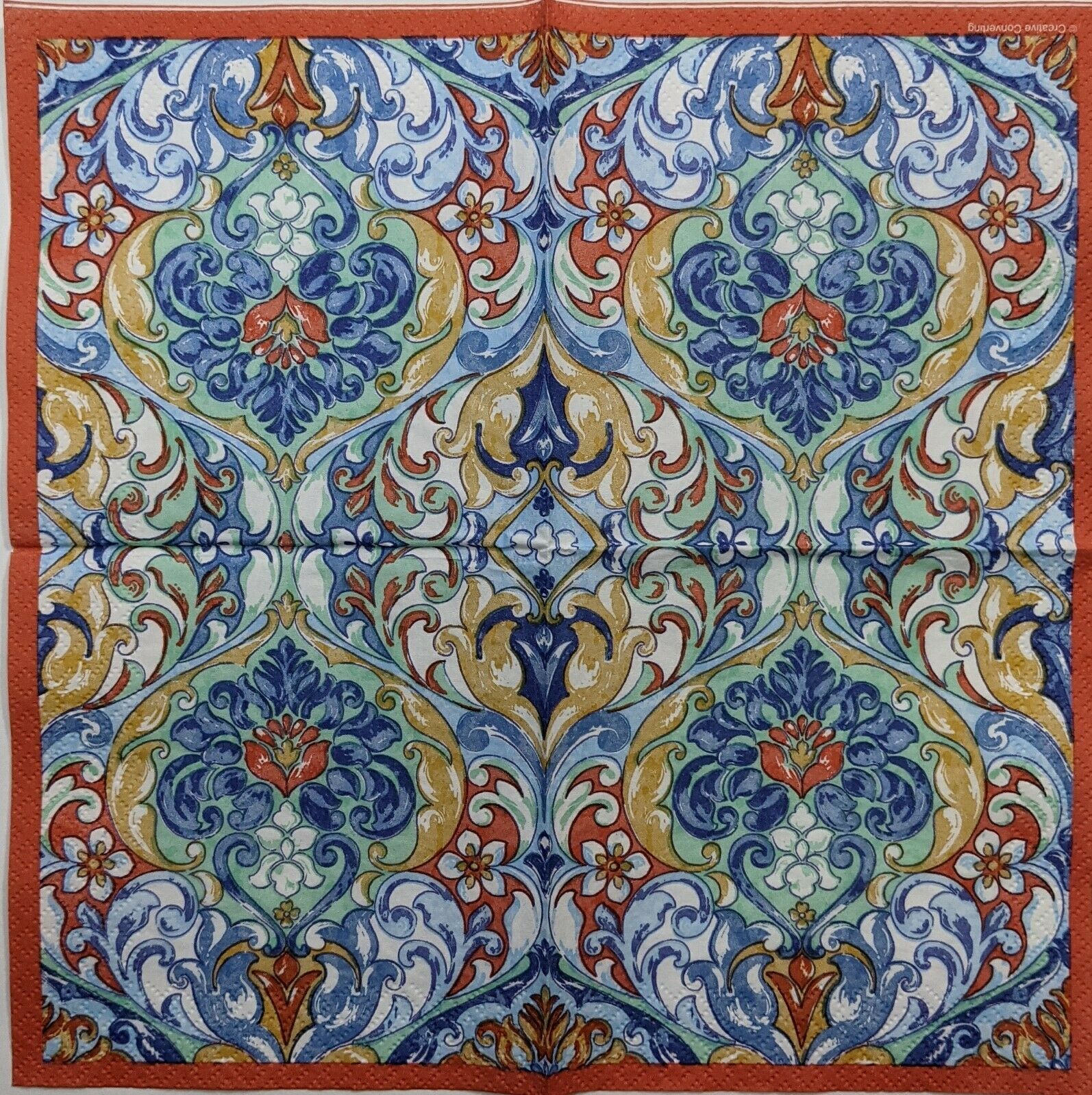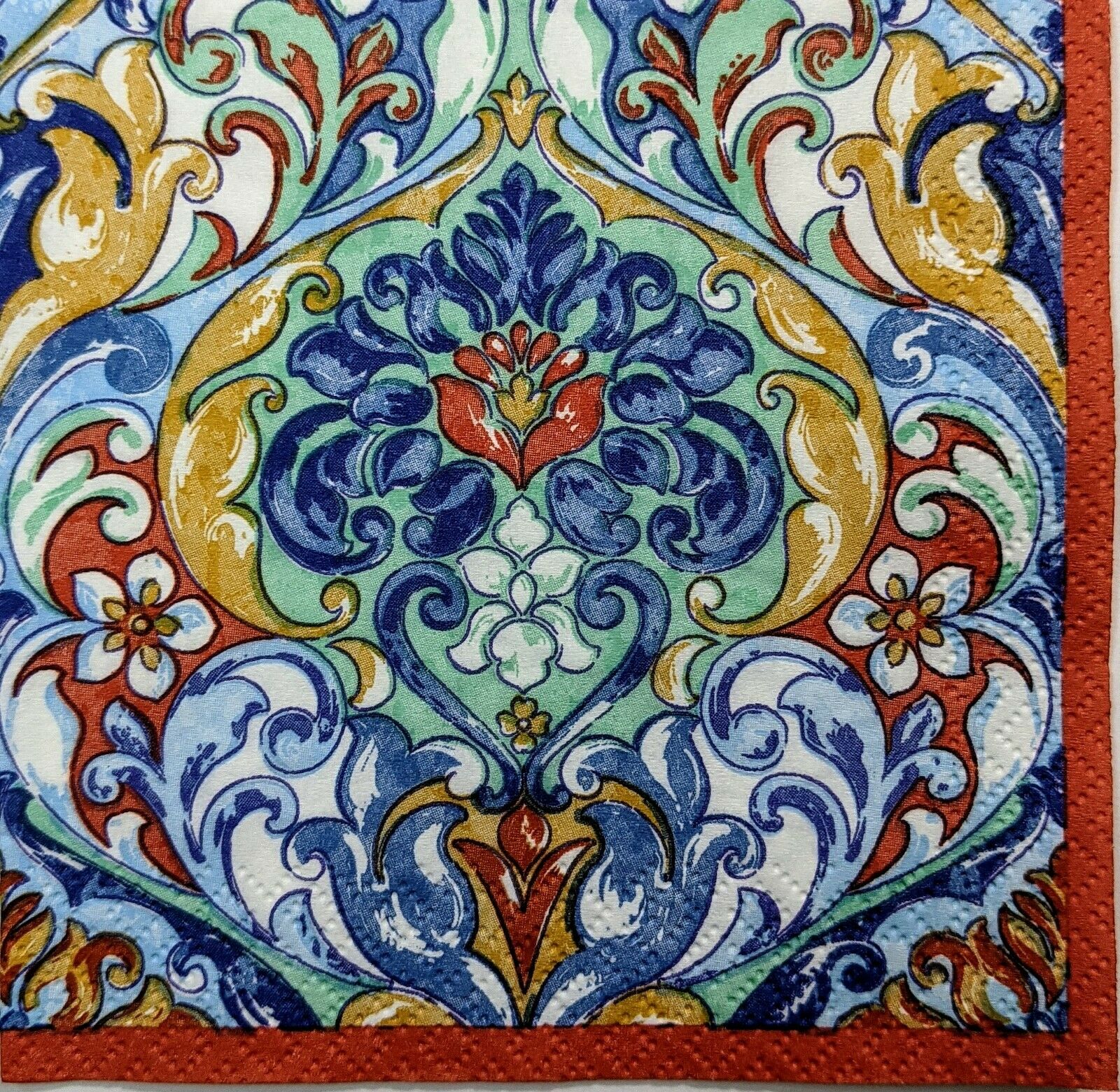 TWO Individual Paper Cocktail/Party 4.92" x 4.92" 3-ply Decoupage Napkin - Classic Damask Bold Colors. Vibrant.