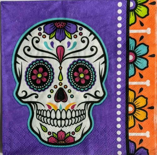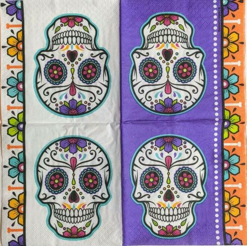 TWO Individual Paper Cocktail/Party 4.75" x 4.75" 2-ply Decoupage Napkin - Day of The Dead